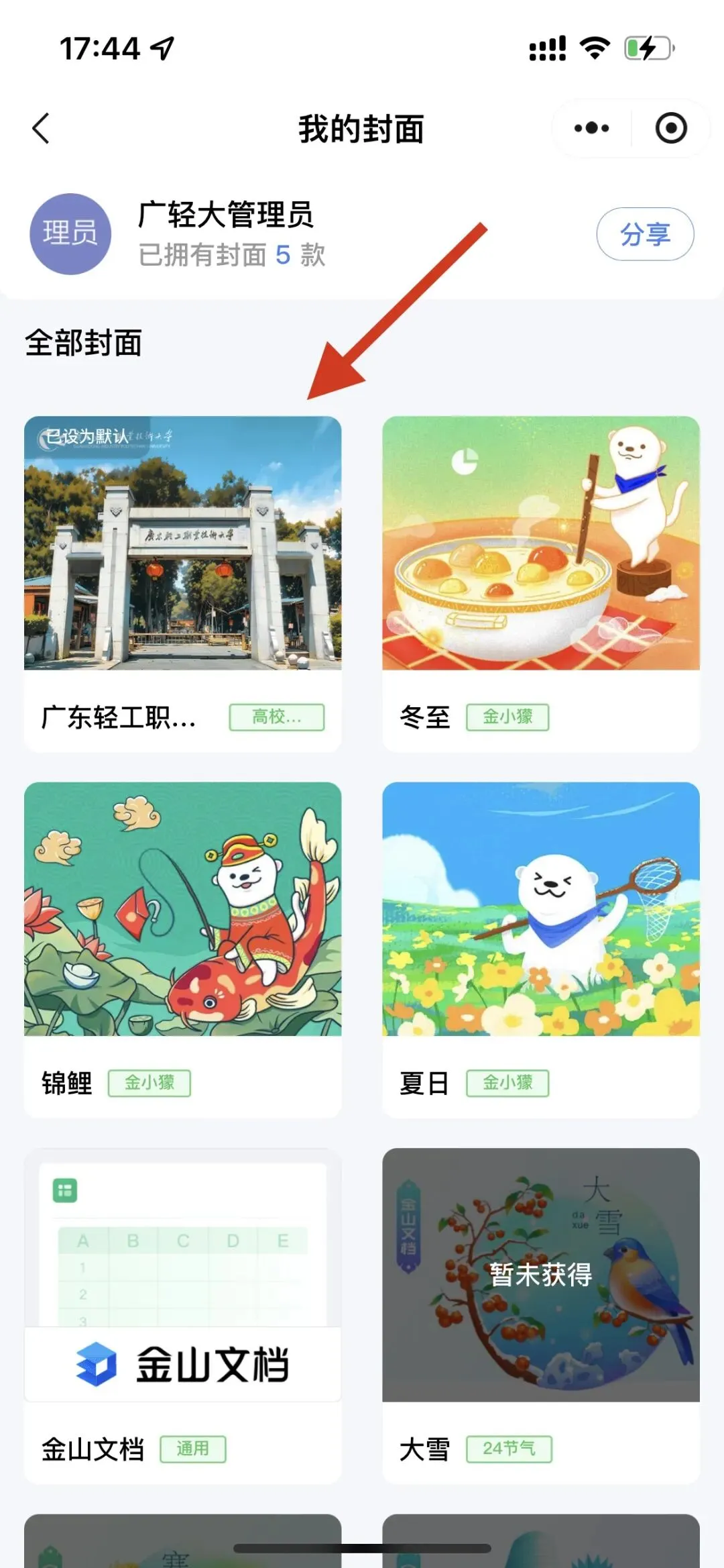然后点击广轻大专属封面,设为默认即可~