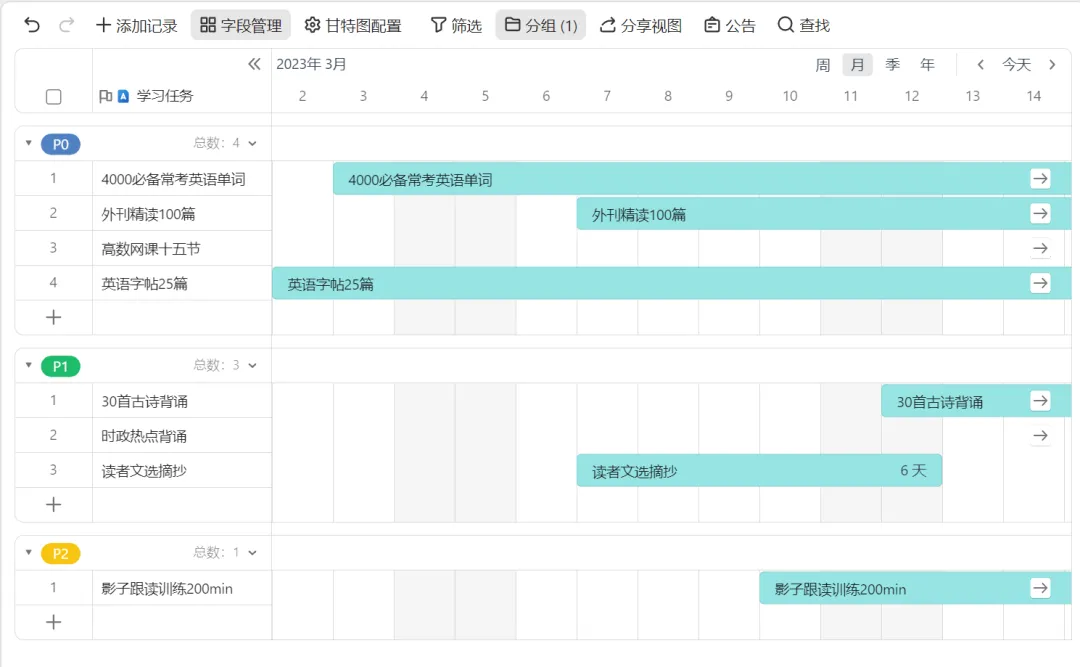 个人复习周计划制定、小组作业责任分配&完成进度跟进、组织校内活动……信息整理困难?内容无法可视化?WPS 365包含「多维表格」等功能,一站式解决信息统计、展示等难题!