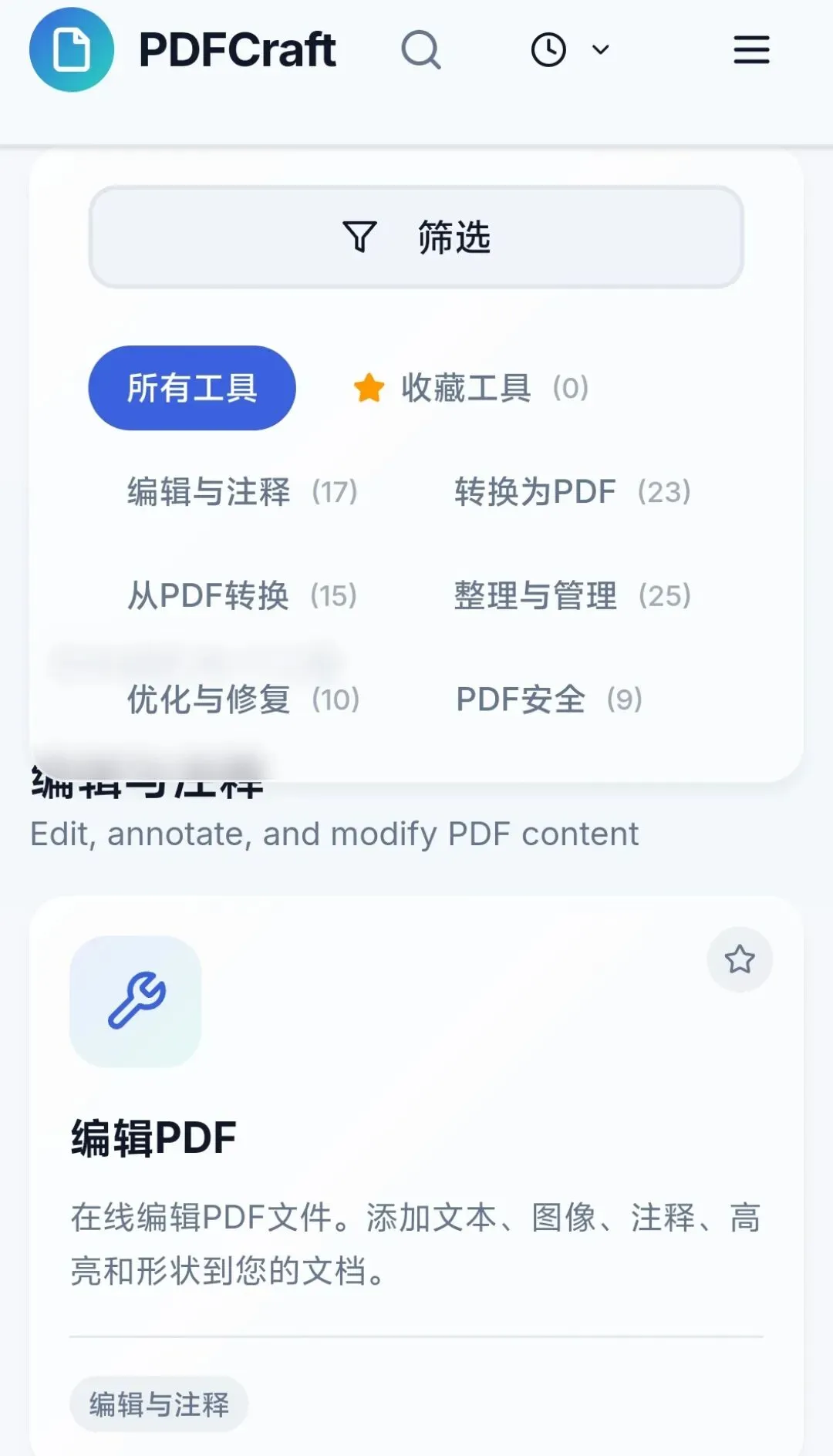 PDFCraft是一款功能全面的在线PDF处理工具,无需下载,直接通过浏览器即可使用。