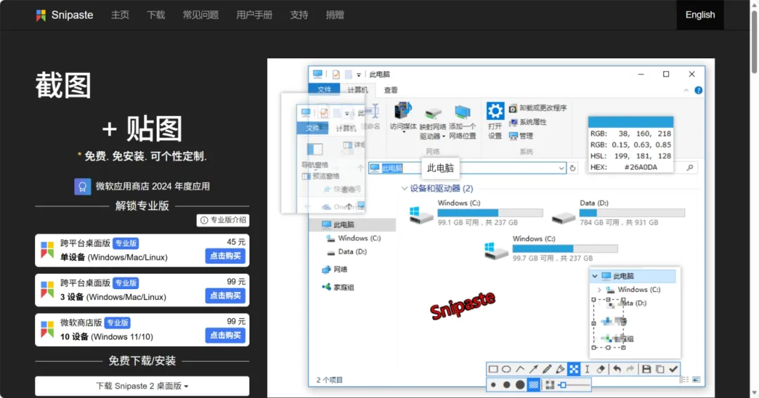 Snipaste是一款功能强大的截图贴图工具;软件支持Windows和macOS。