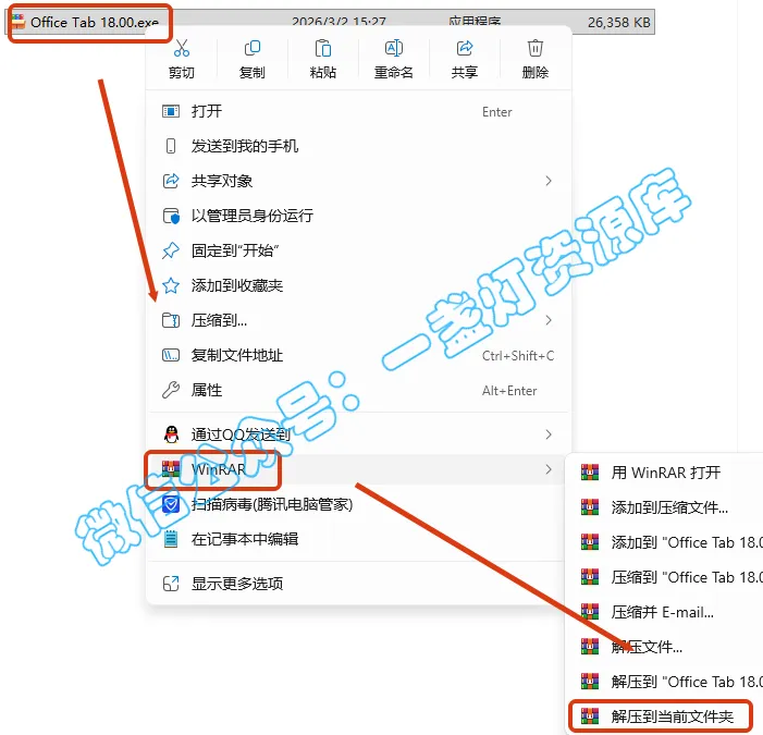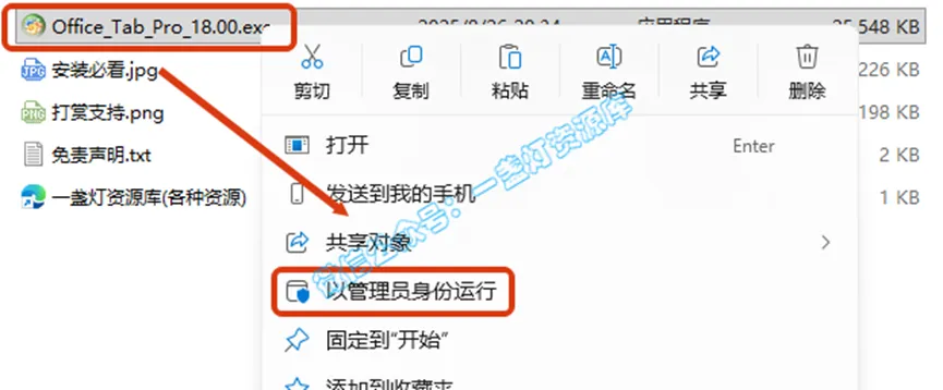 2.打开刚刚解压的文件夹,鼠标右键点击【Office_Tab_Pro_18.00.exe】选择【以管理员身份运行】