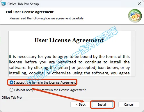 3.勾选【I accept…】,点击【Install】