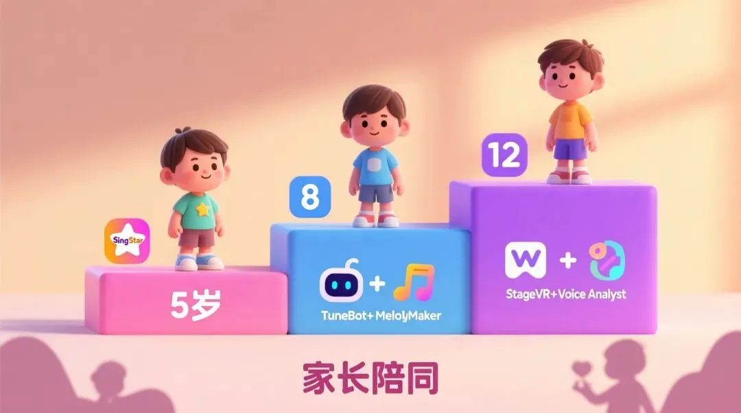 1.下载App后,先和孩子一起完成“声音测试”(3分钟)2.从“儿童歌曲库”选择孩子熟悉的儿歌开始3.每天玩15分钟,重点关注“音准曲线图”4.周末可以开启“家庭KTV模式”,全家一起唱
