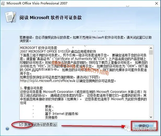 5.选择我接受此协议的条款,点“继续”