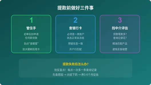 如果已经提款失败,千万不要重复点击提款,越点征信越花。首先要做的就是先搞清楚被拒的具体原因。是查询超了?负债高了?还是账户问题?对症下药