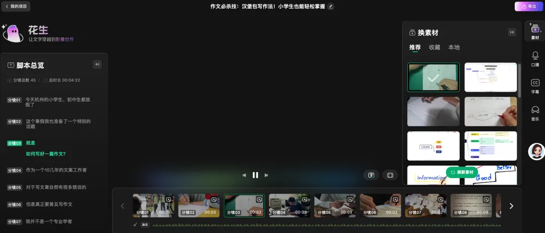 结果让我大吃一惊,逻辑有点像昨天推荐的小云雀,左侧可以编辑文本,右侧有分镜头。
