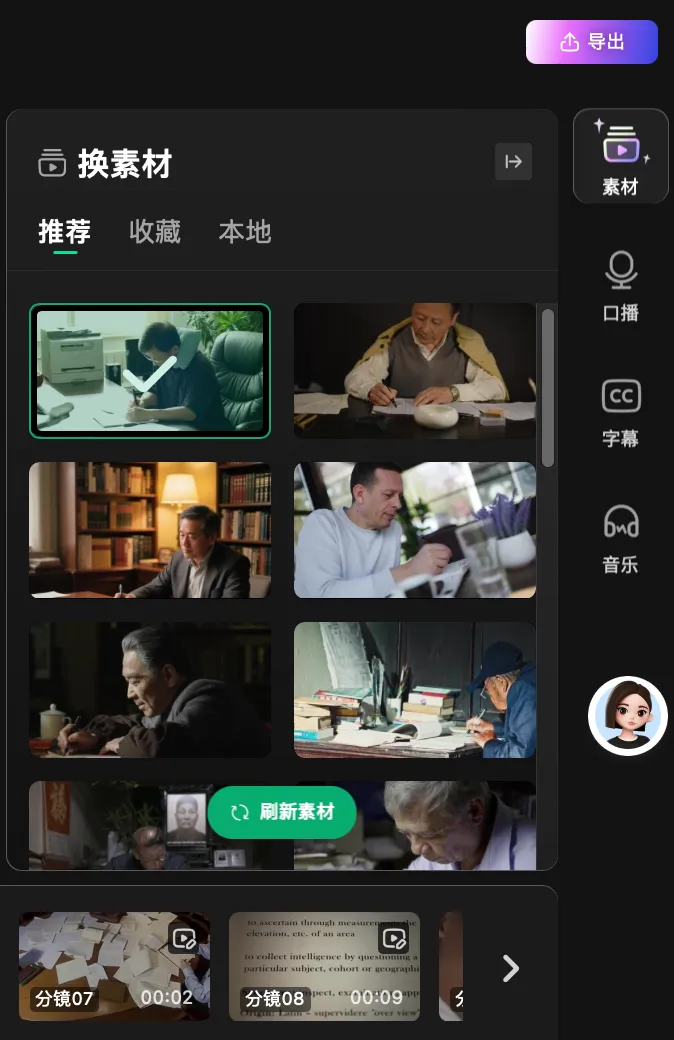 最牛的是分镜头的素材是可以随意替换,而且可以不断刷新素材库。