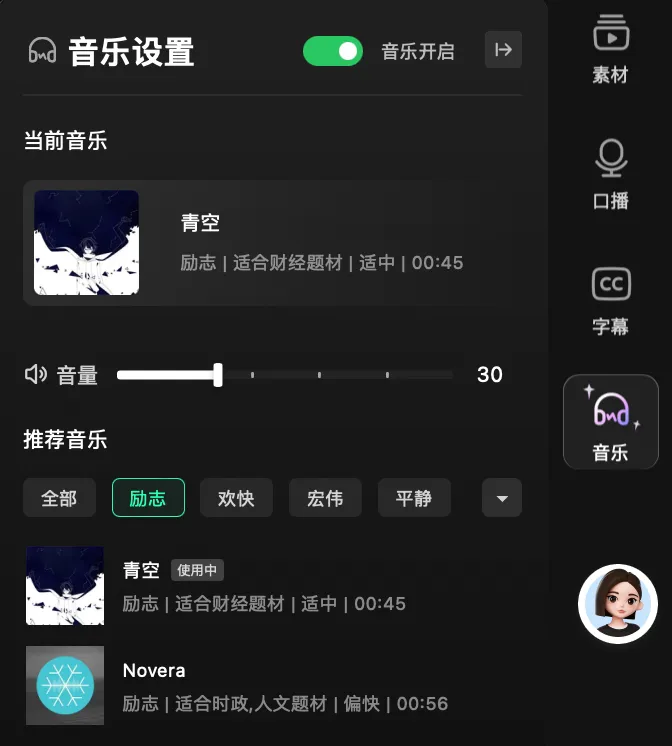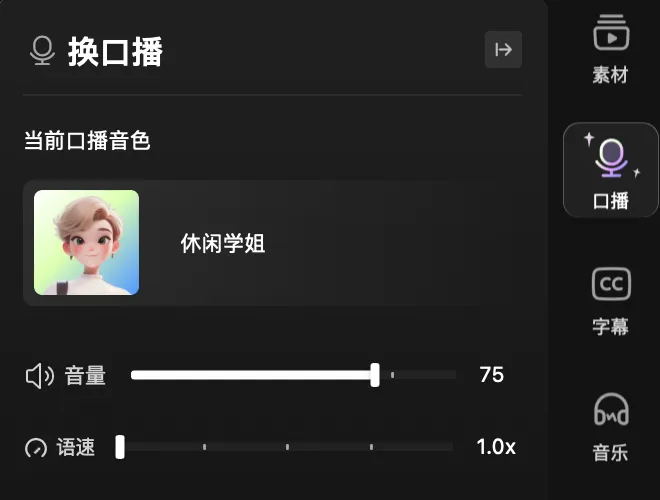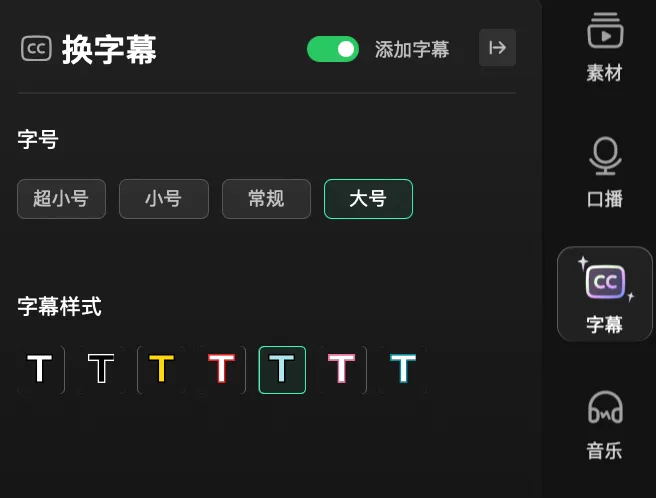 而且还支撑换口播、换文本字幕颜色和样式、换背景音乐。