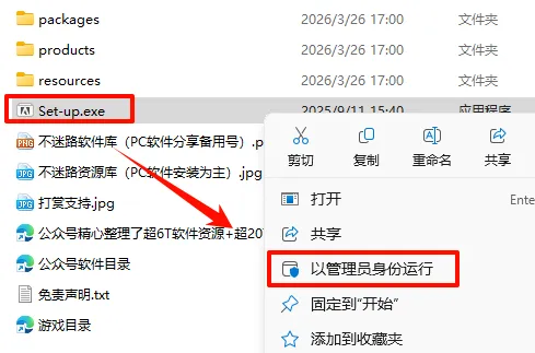 2.打开刚刚解压的文件夹,鼠标右键点击“Set-up.exe”选择“以管理员身份运行”