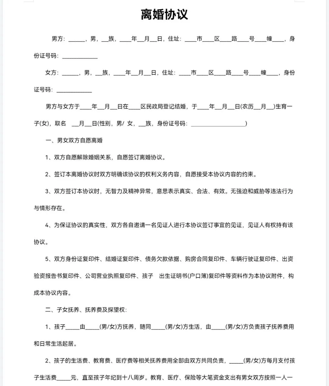 2025年最新版《离婚协议书》电子版可下载 可打印可修改 65种情况超全