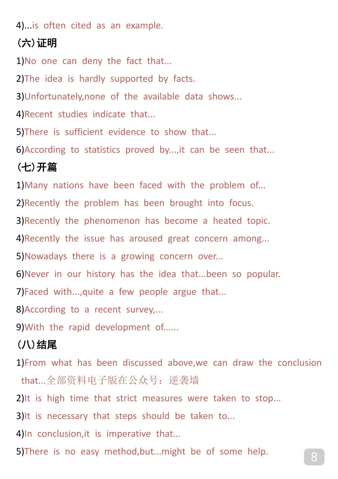高中英语作文万能模板+14类常用短语(可打印) 十三种高考英语作文高分句型+作文模板 180个高考英语核心词的词性转换+规律归纳(可打印) 高考英语常考易混词+记忆方法 高中英语作文之高分好用句型 高考英语688高频词(单词背诵+语篇串记+阅读练习) 欢迎关注和点赞,持续更新的中 – END – 内容整理于网络,仅作分享