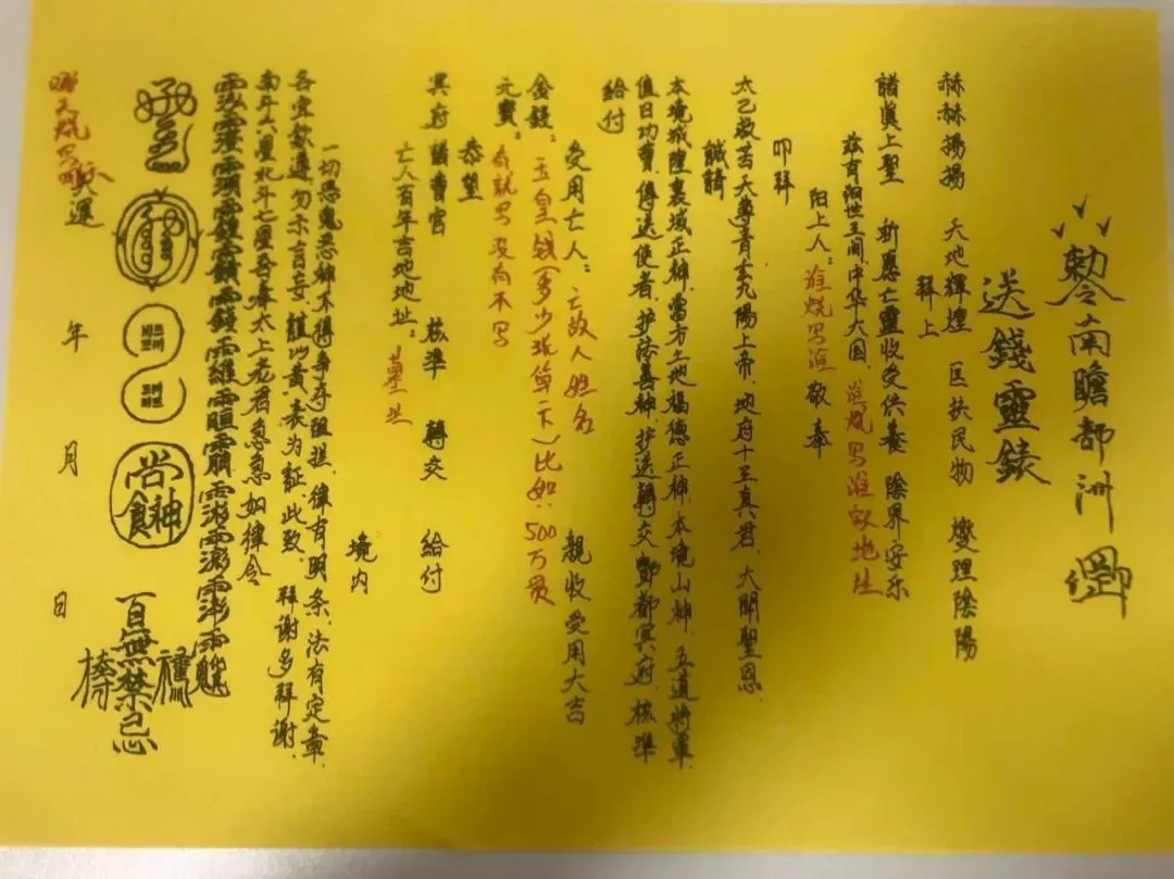 正统的玉皇钱,是配的有送钱表文的,相当于银行汇款单,把汇款单写清楚了,先人自然而然也就收到了。