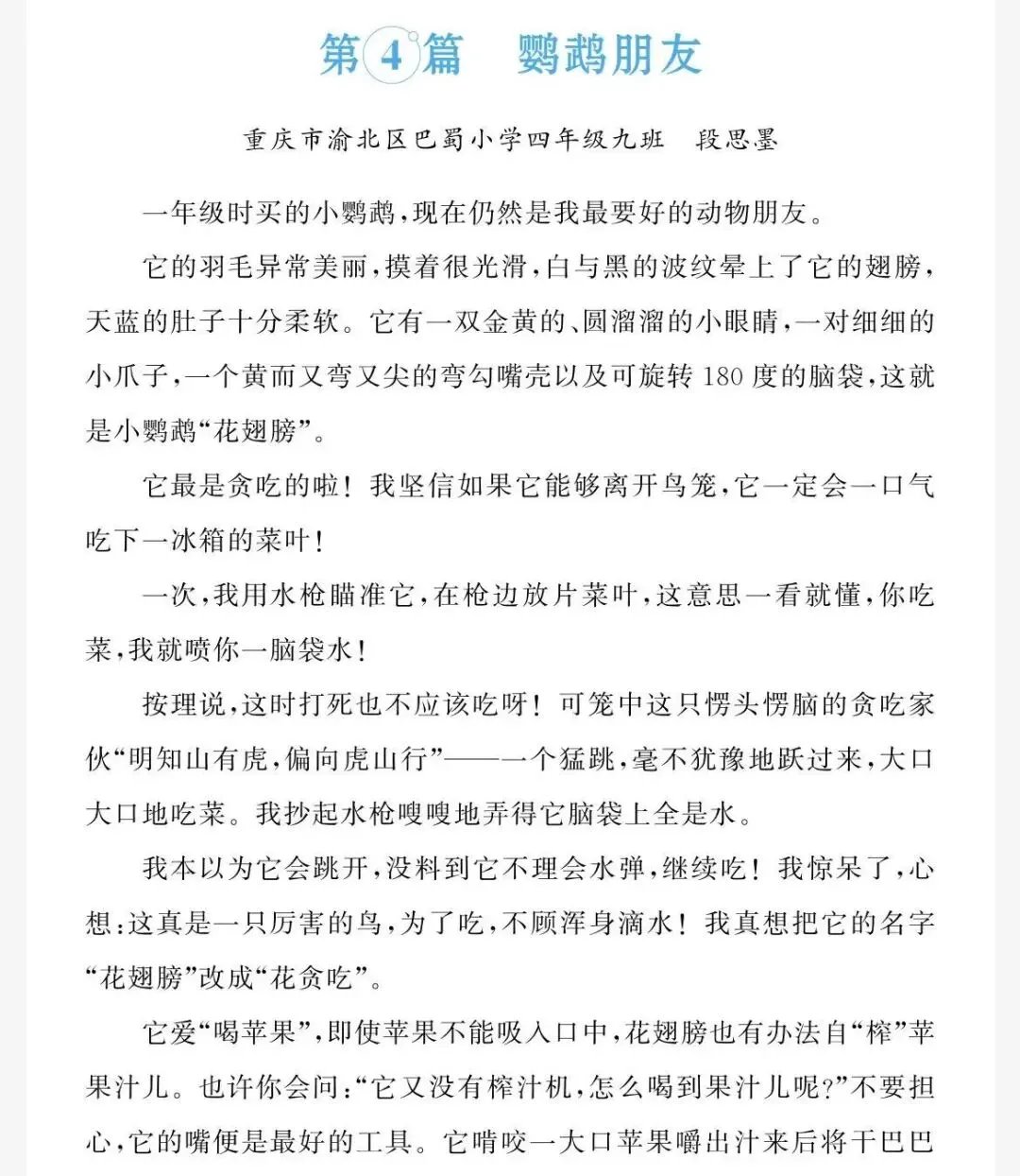 四下第四单元作文:《我的动物朋友》(附可打印作文)