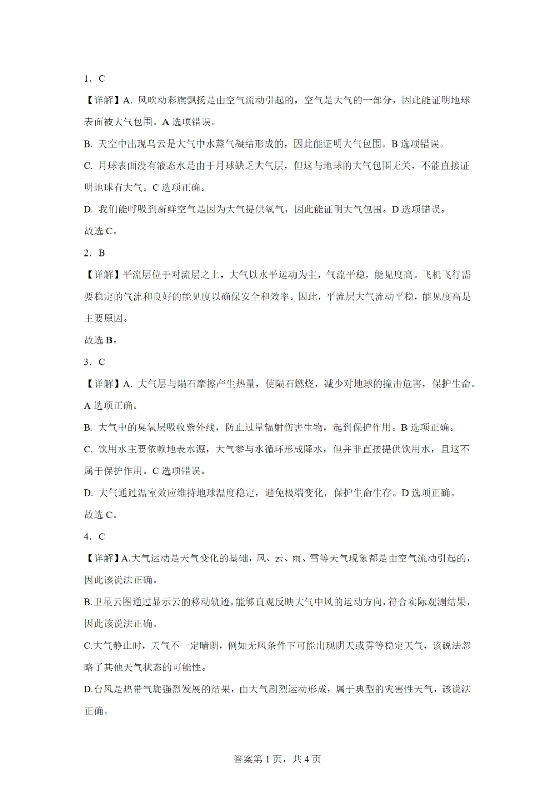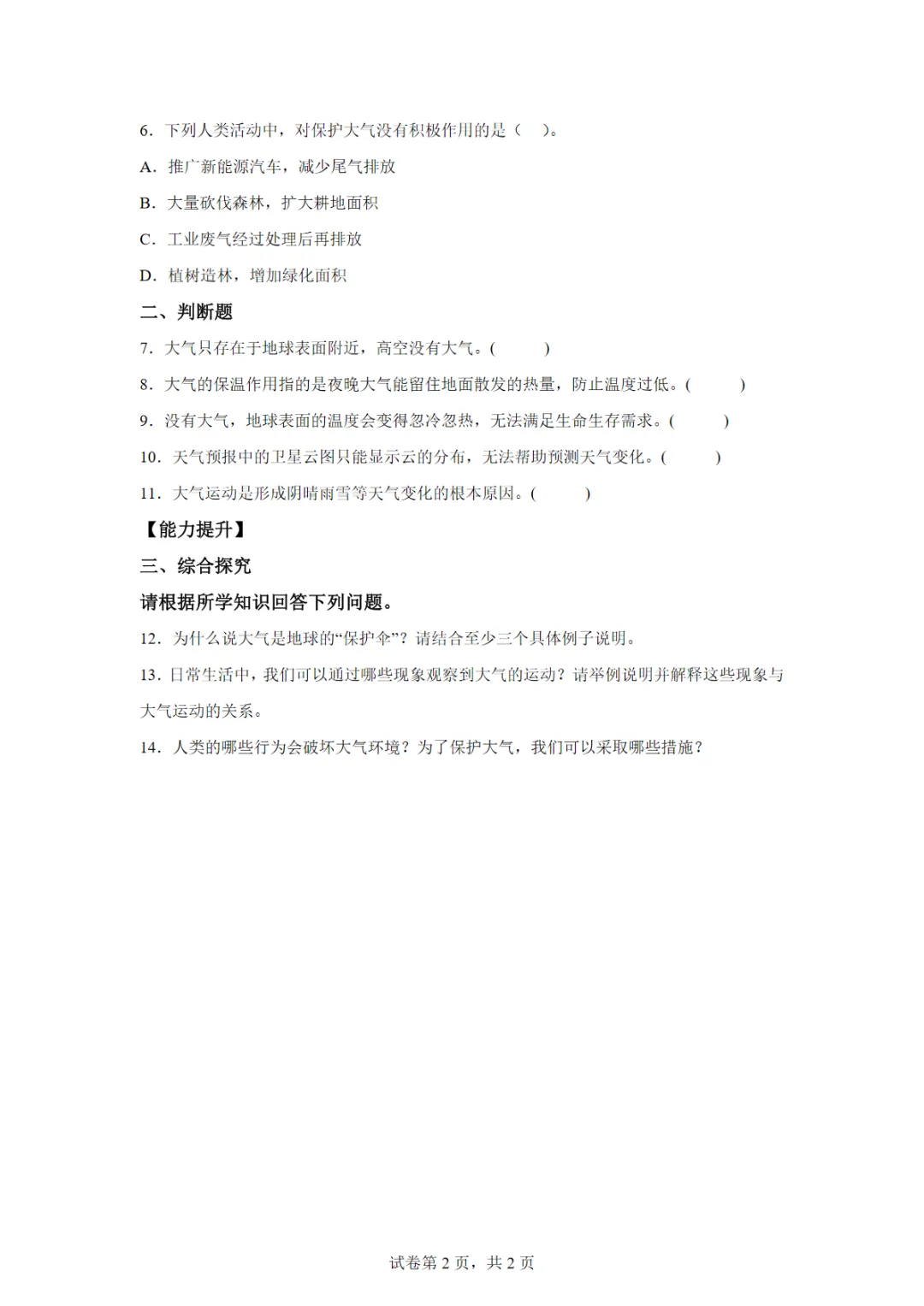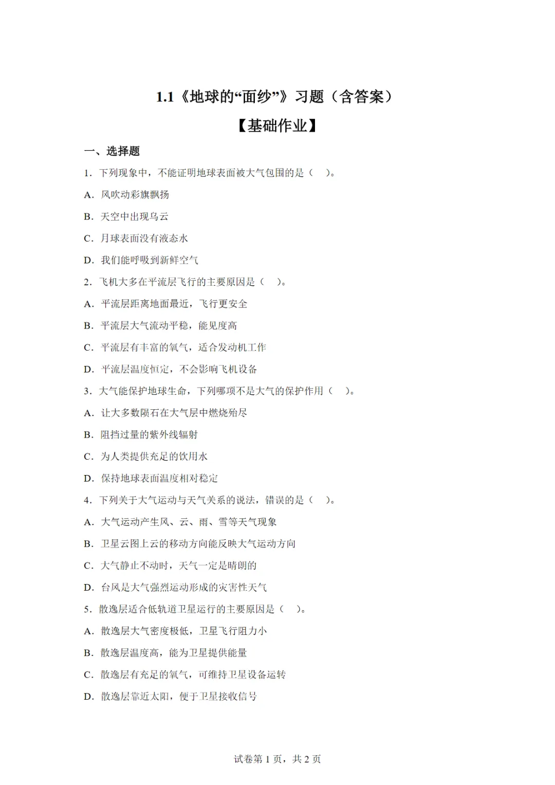 【高清电子版】1.1 地球的“面纱”(分层作业)科学青岛版五四制三年级下册(新教材)