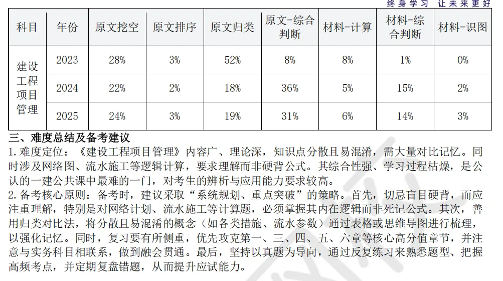 2026年一级建造师《项目管理》难度说明