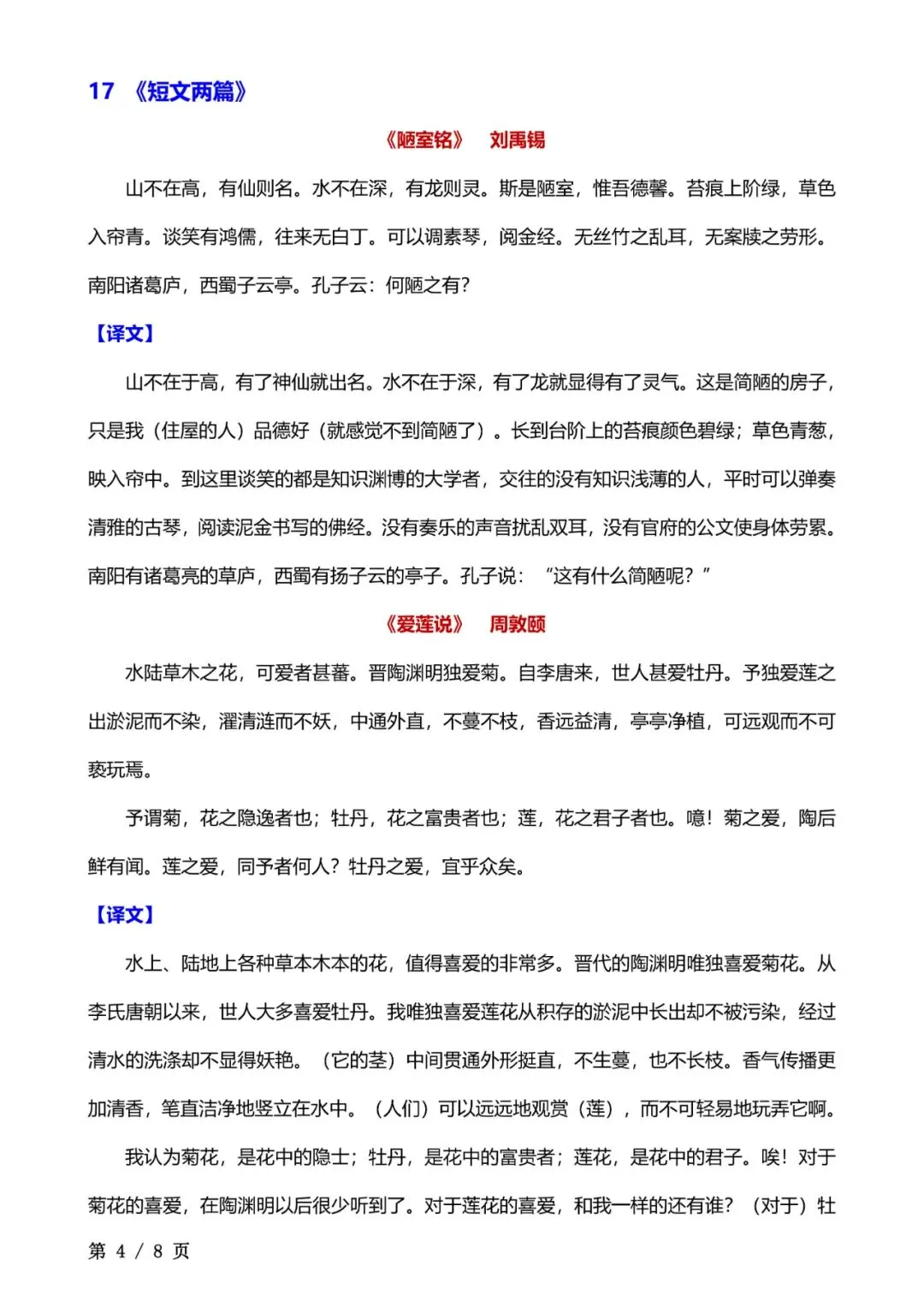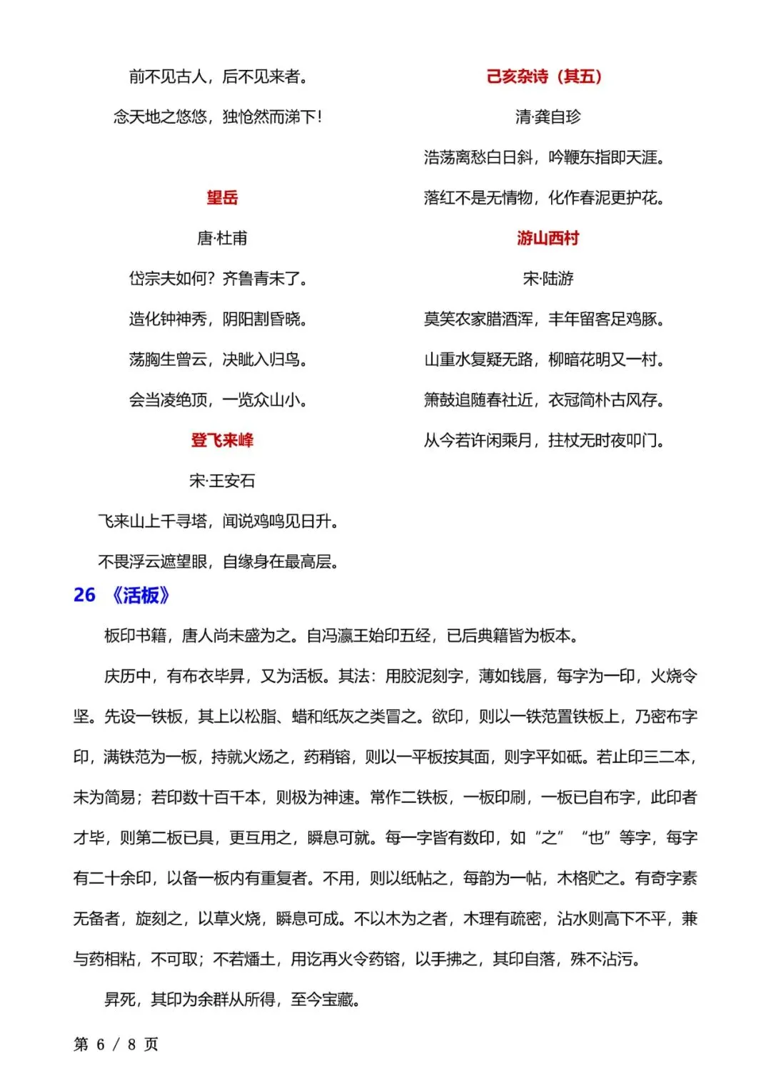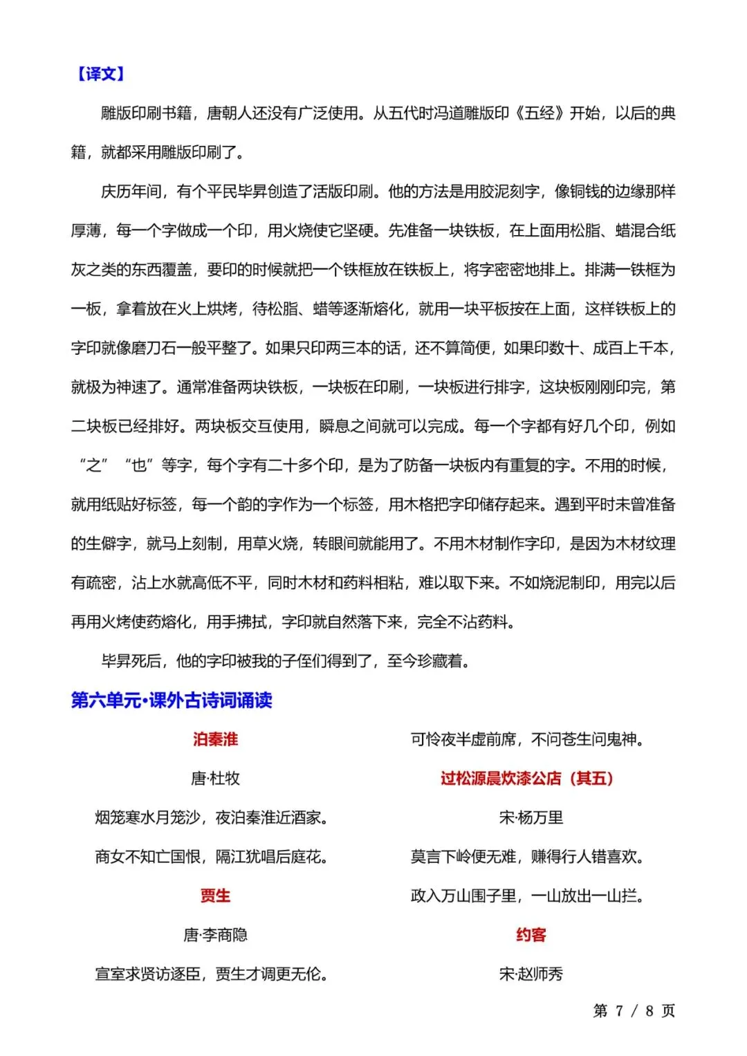 七年级下册语文必背课文清单电子版可打印