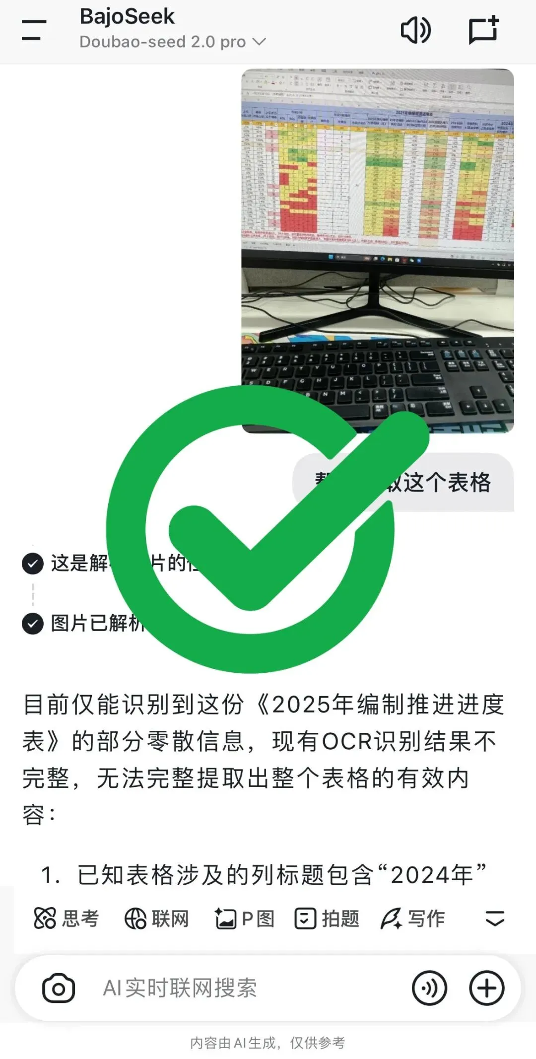 看到绝佳的干货长图,或者别人发来的图片表格,难道只能边看边打字?BajoSeek 的智能识图(OCR)不仅能精准提取文字,连复杂的表格和图表布局都能看懂!