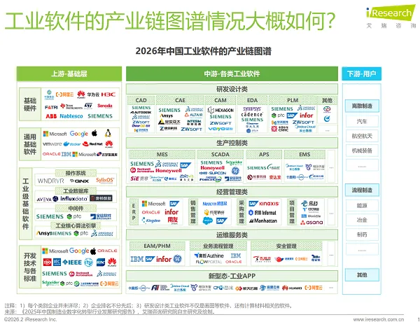 随着“十五五”规划编制工作深入推进,工业软件作为制造业数字化转型的核心议题,再次成为各界关注的焦点。近日,艾瑞咨询发布《2026年中国工业软件行业发展研究报告》(以下简称《报告》),系统梳理了中国工业软件市场的规模、困境与变革方向。