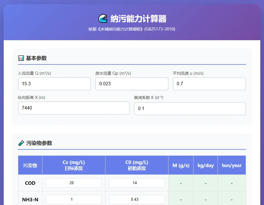 需要纳污能力计算器的朋友请在后台回复“纳污能力”获得下载链接。