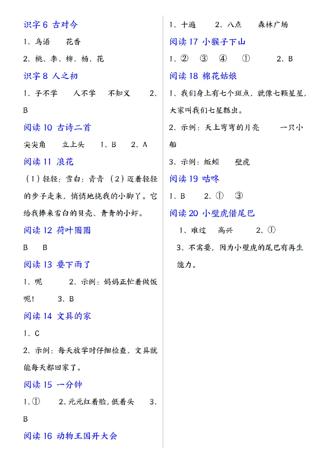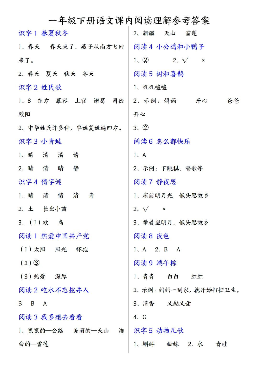点击蓝字,关注我们 2026年一年级下册语文课内阅读小纸条|电子版可打印