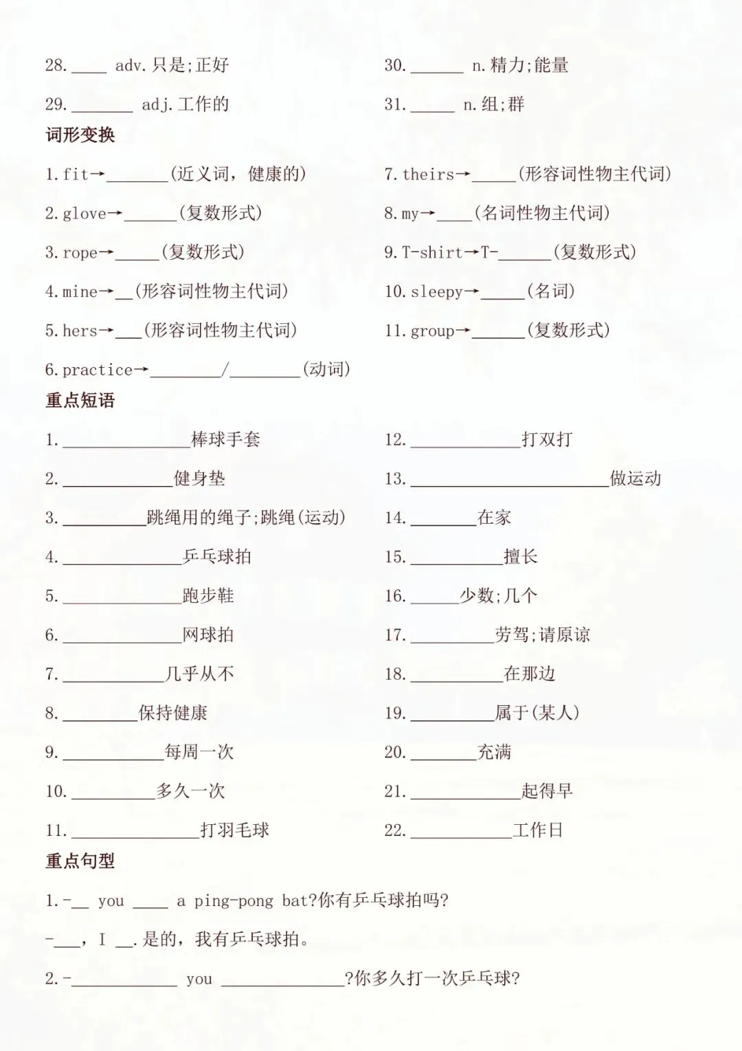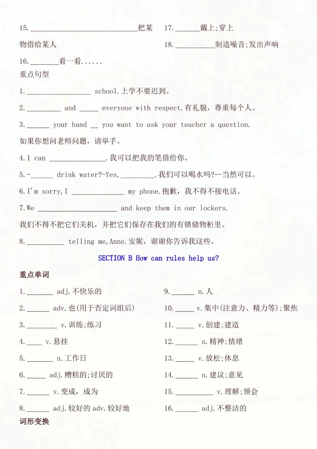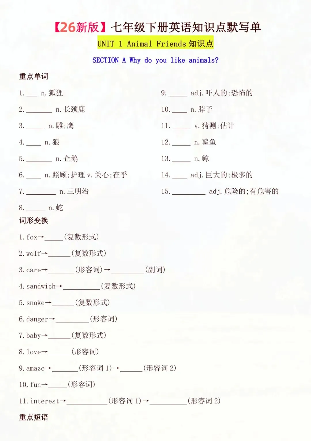 老师帮大家全部整理好了:七年级下册英语全册知识点默写单 电子版可打印!