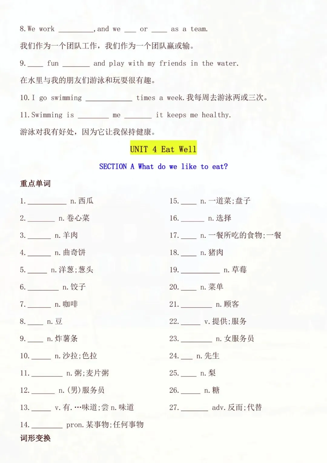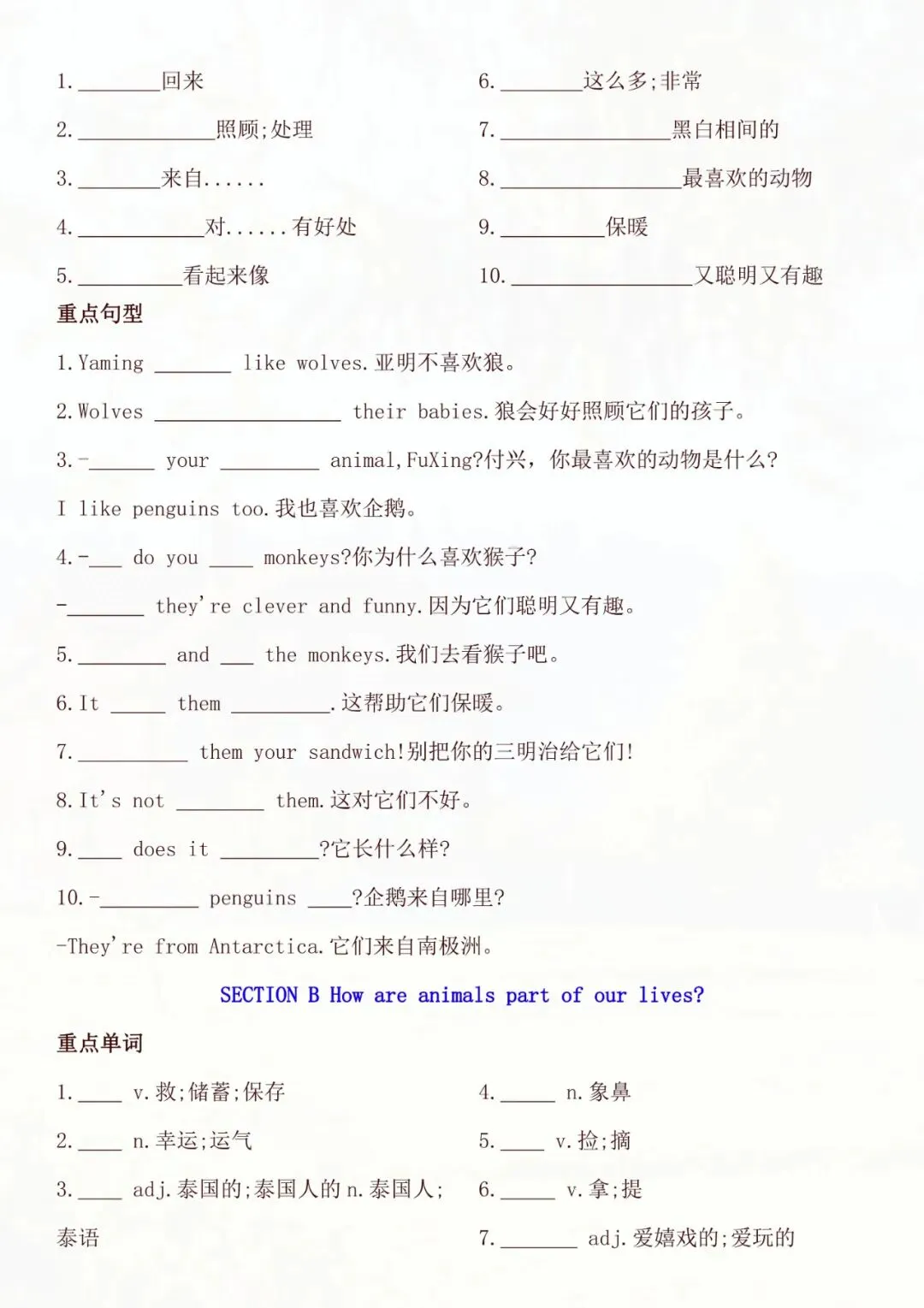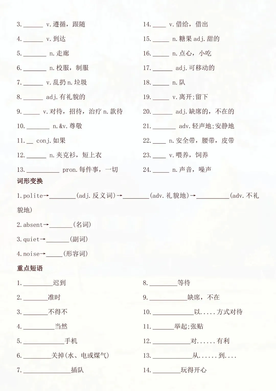 老师帮大家全部整理好了:七年级下册英语全册知识点默写单 电子版可打印!