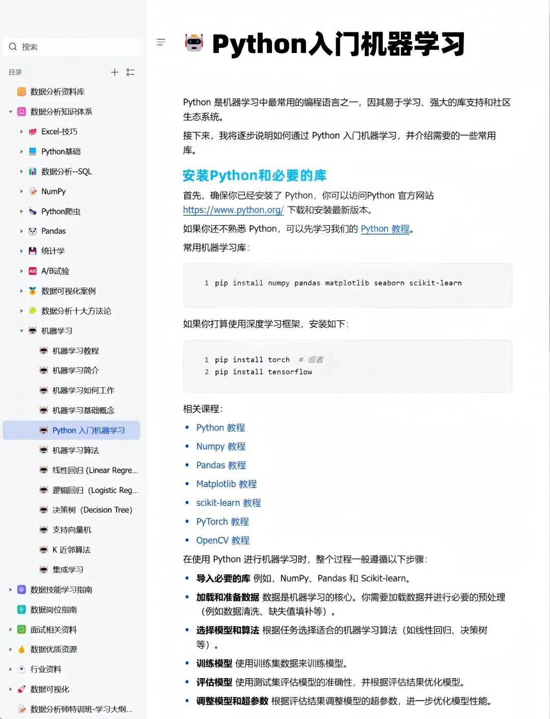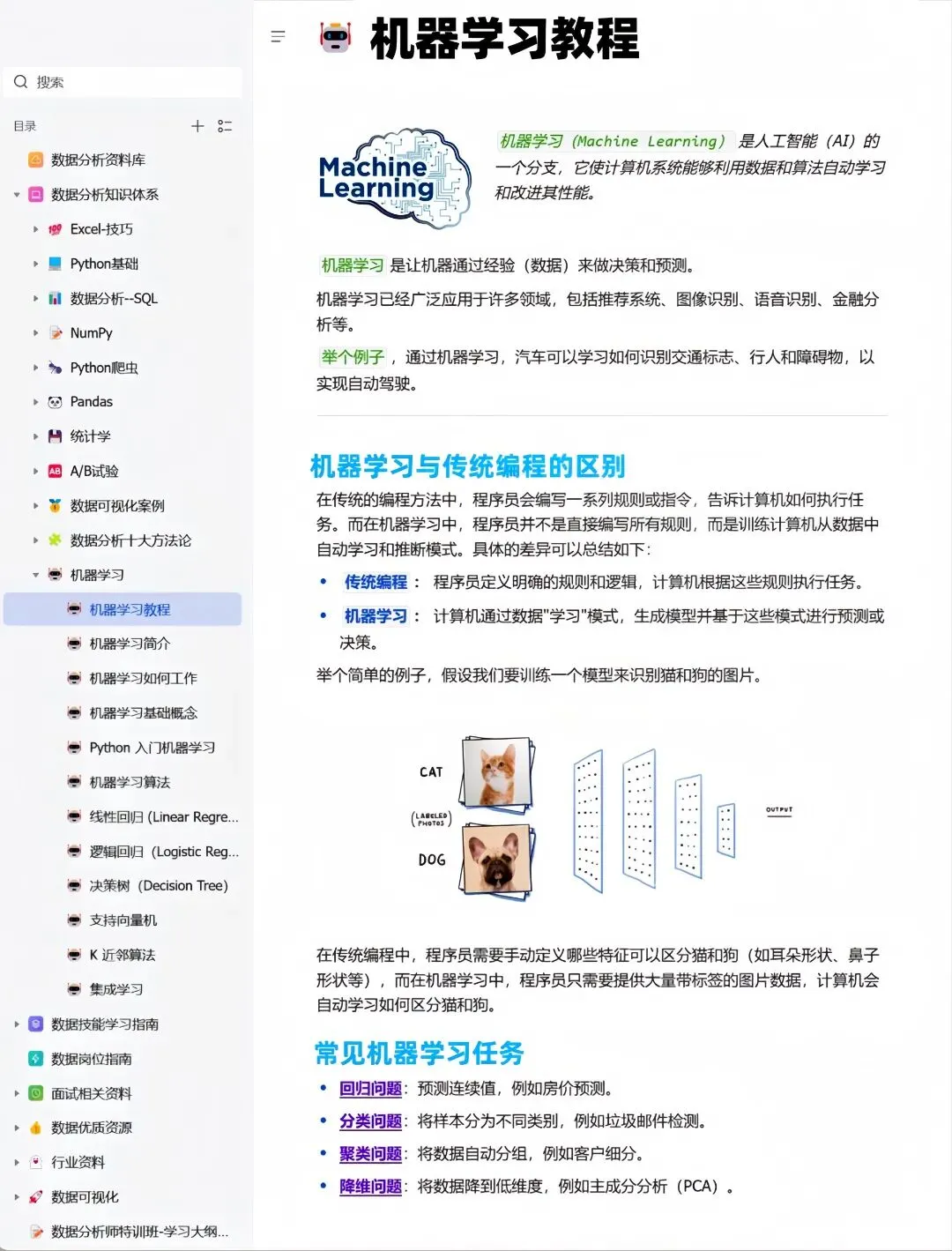 今天就用这个知识库在线文档讲清楚这机器学习10大经典算法。全套知识库视频教程、课件源码、学习笔记,已打包📦好,有需要的关注一下,后台发“111”即🉑拿走!手把手带你入门学习