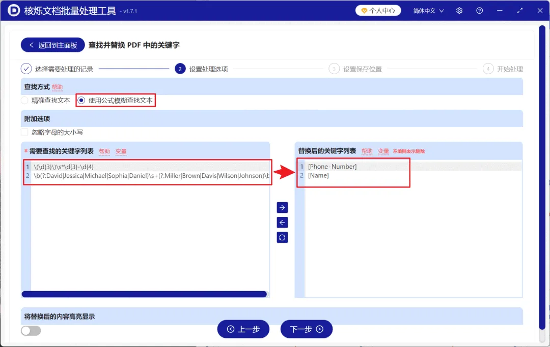使用模糊匹配批量替换 PDF 中姓名和数字的操作步骤