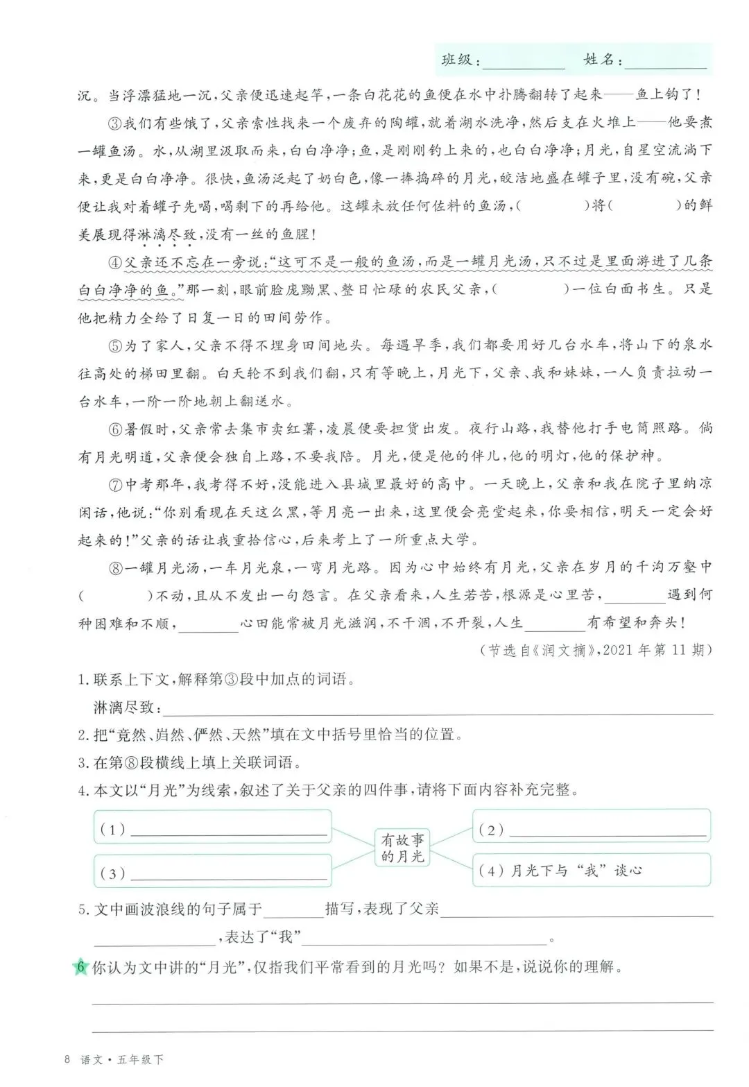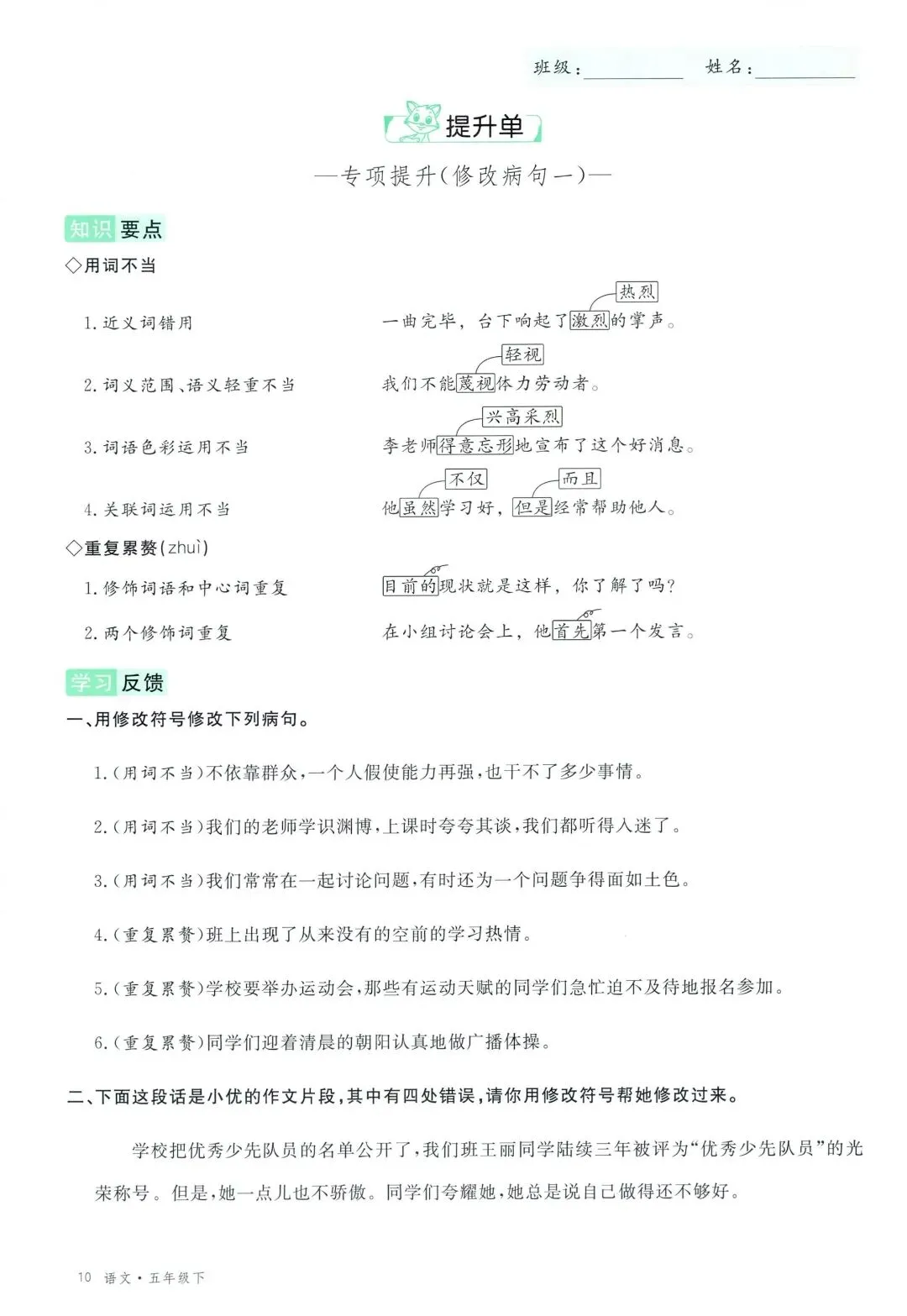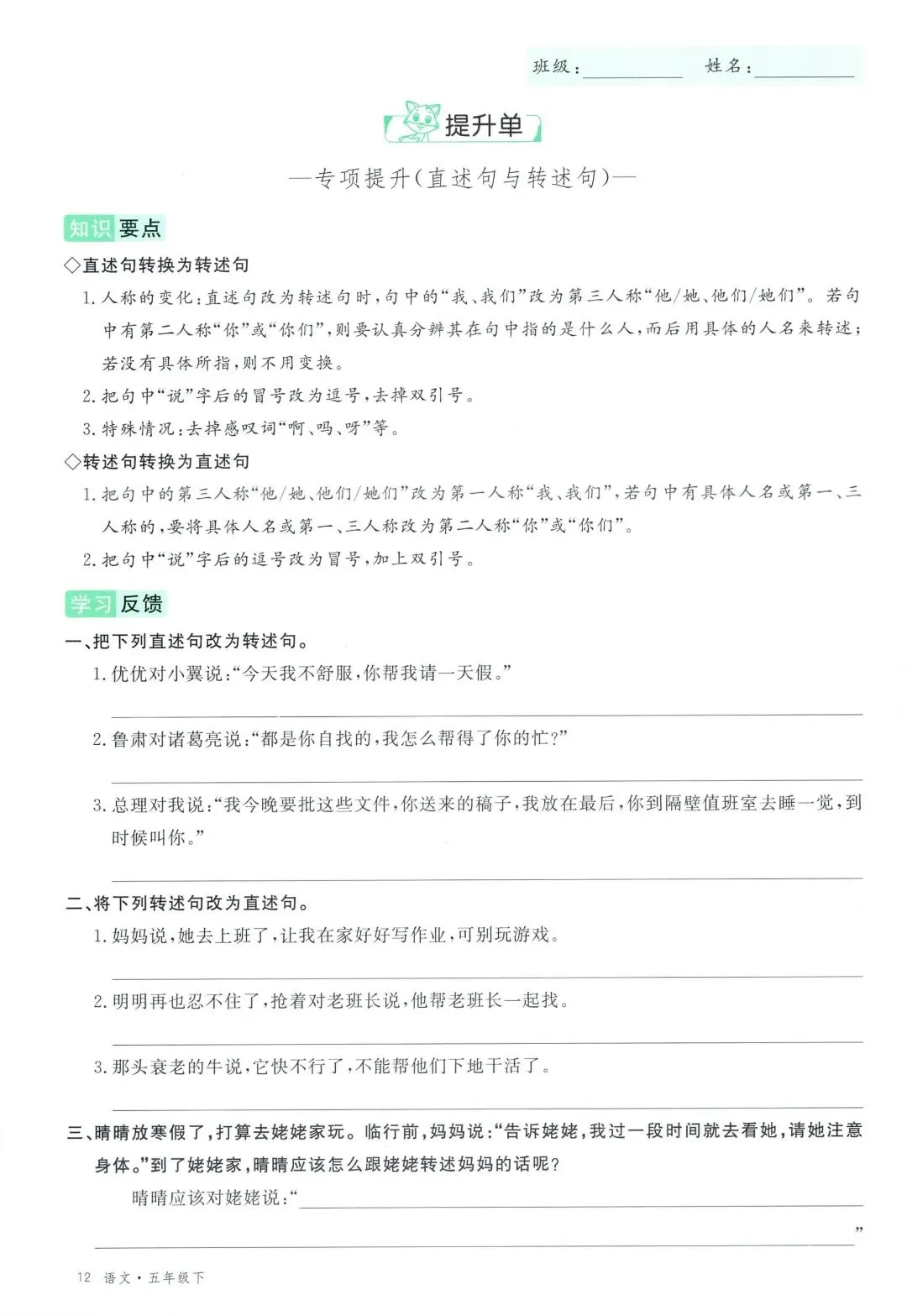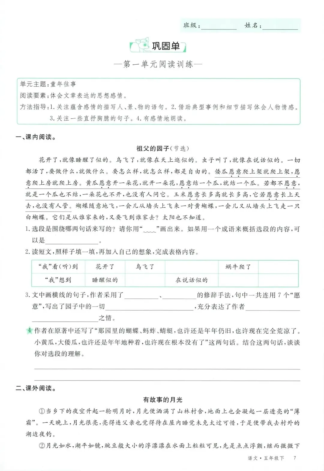 可打印!2026 春季五年级下册语文全册学习单,同步教材全覆盖