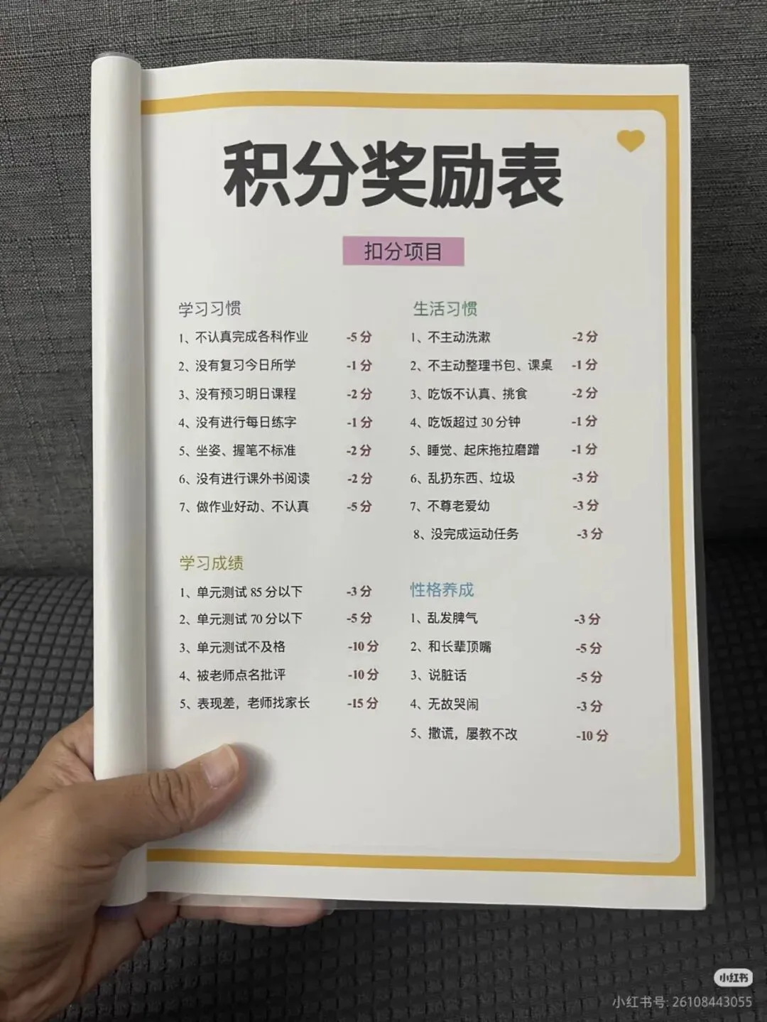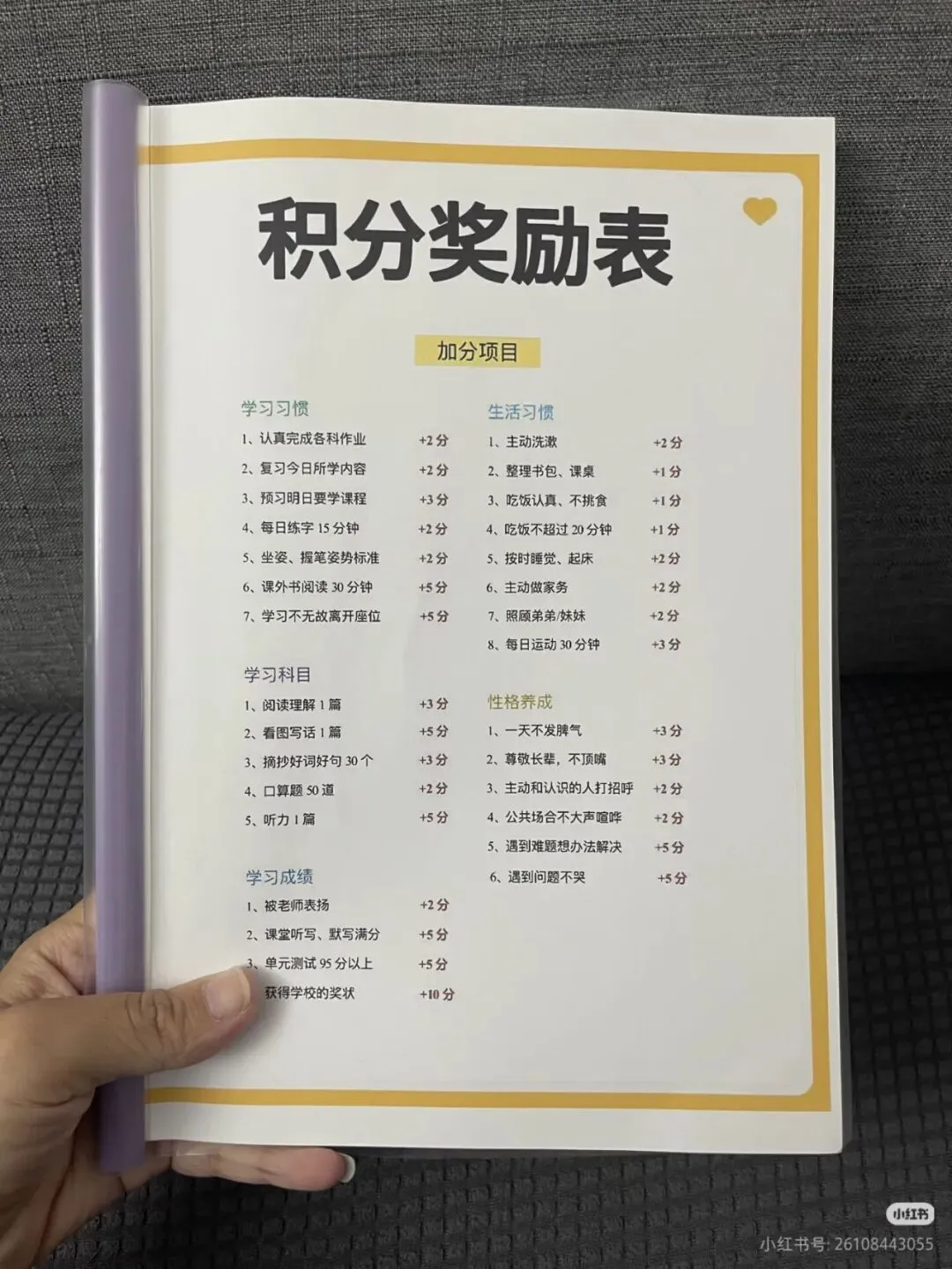 还在为娃写作业拖拉、生活习惯差、动不动就发脾气而头疼吗?博主自用爆肝整理的这份“小学生积分奖励表”,专治各种“不配合”,让好习惯养成像游戏一样有趣,从此告别催促和吼叫!