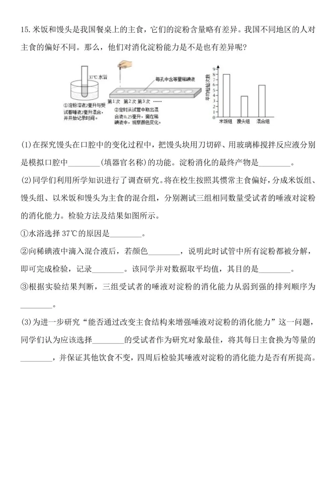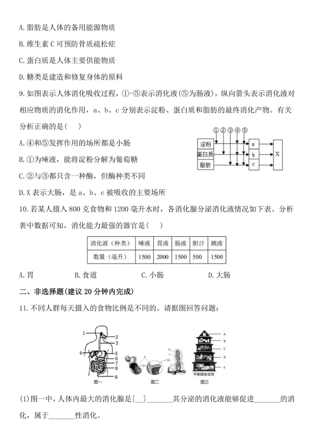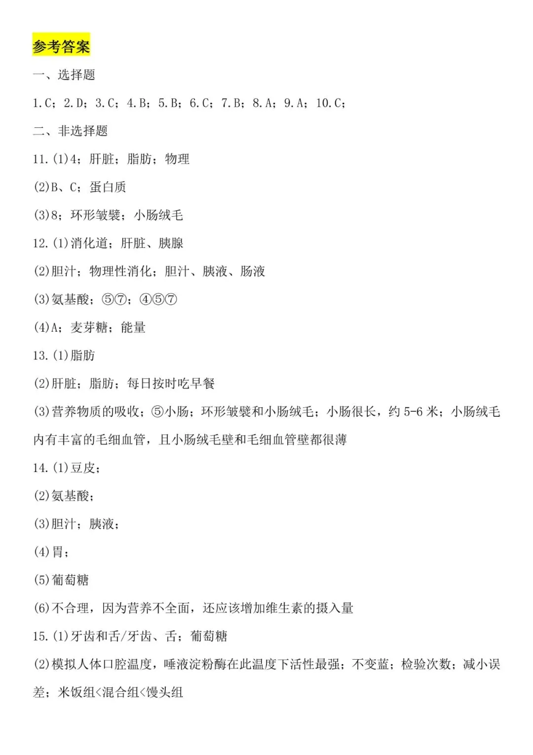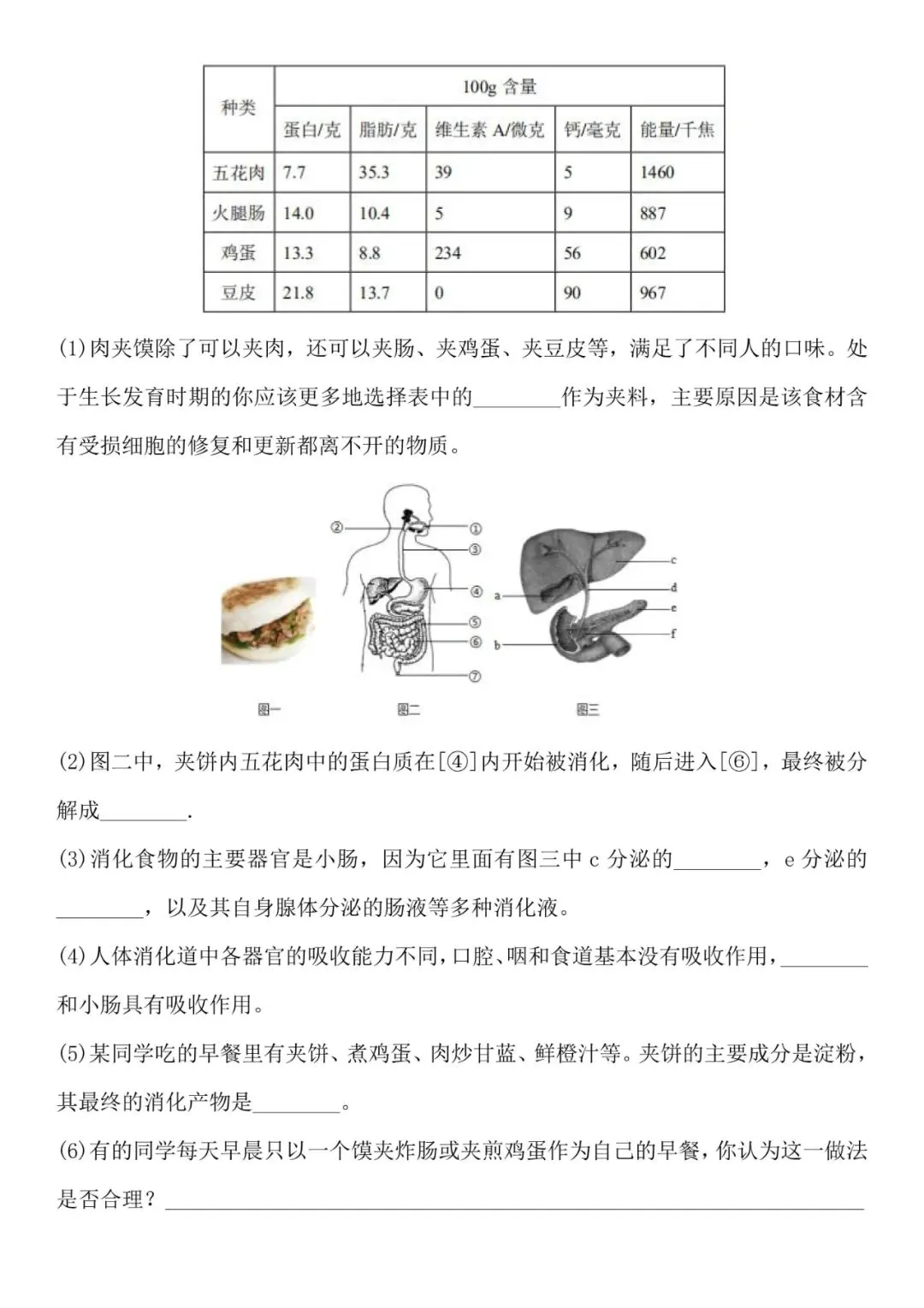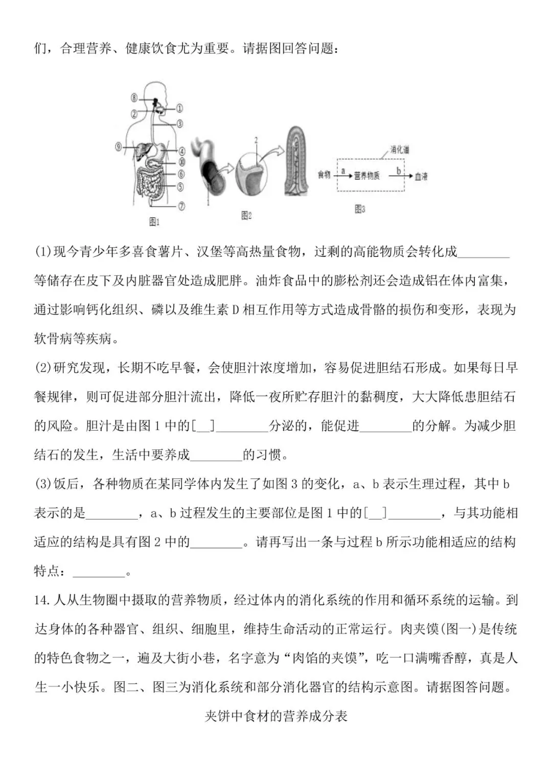 今天老师为大家整理好了:七年级下册生物压轴题 04 人体的营养电子版可打印
