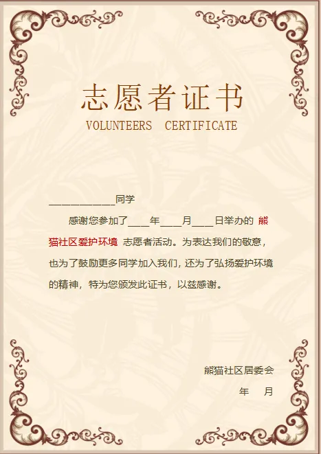 证书是对志愿者奉献行为的肯定与尊重,能增强个人的志愿荣誉感,激励持续参与公益活动。