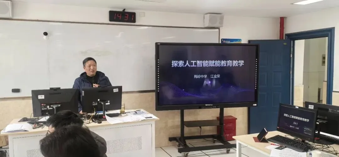 二、梅岭中学江金荣老师做《探索人工智能赋能教育教学》的专题报告