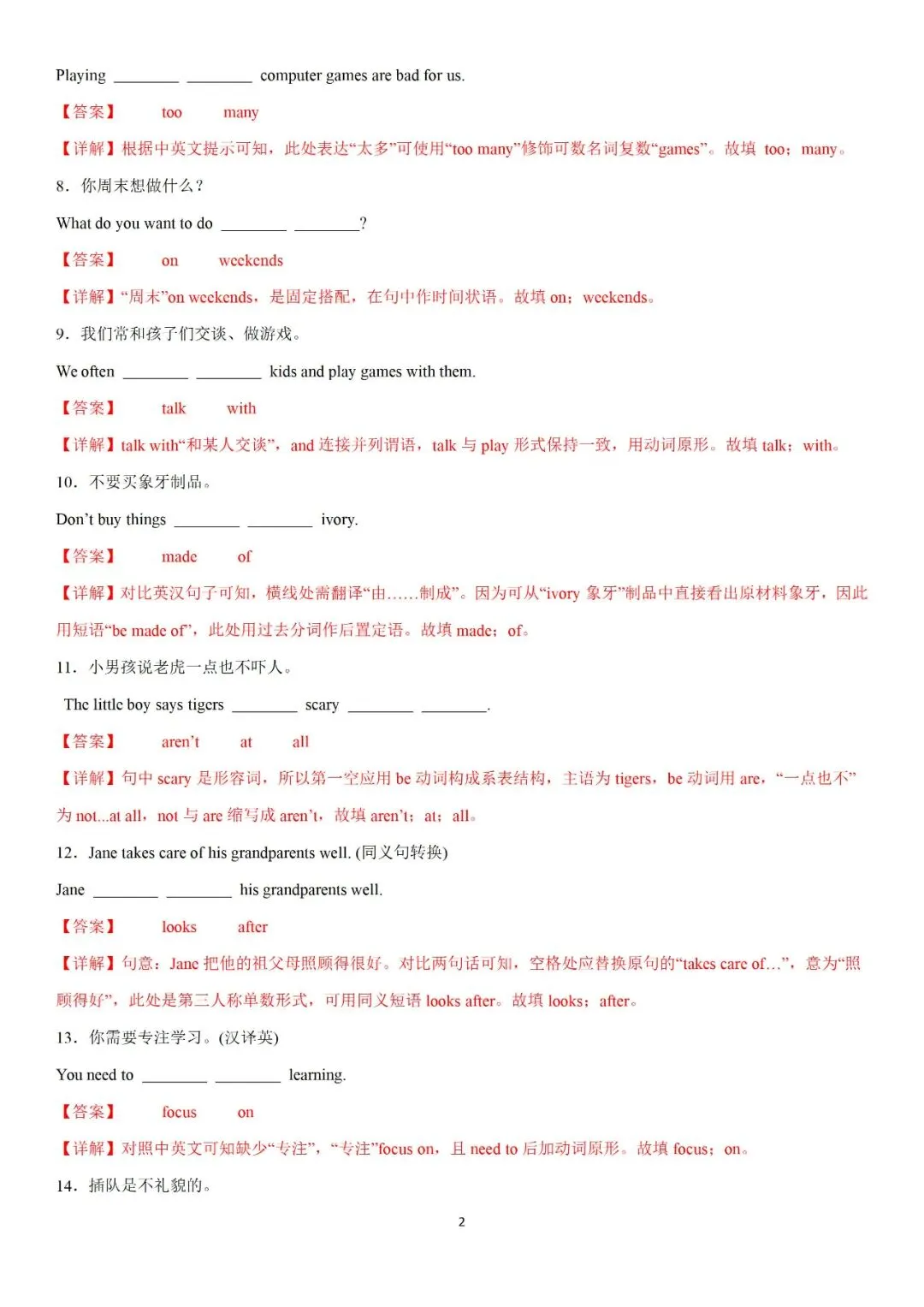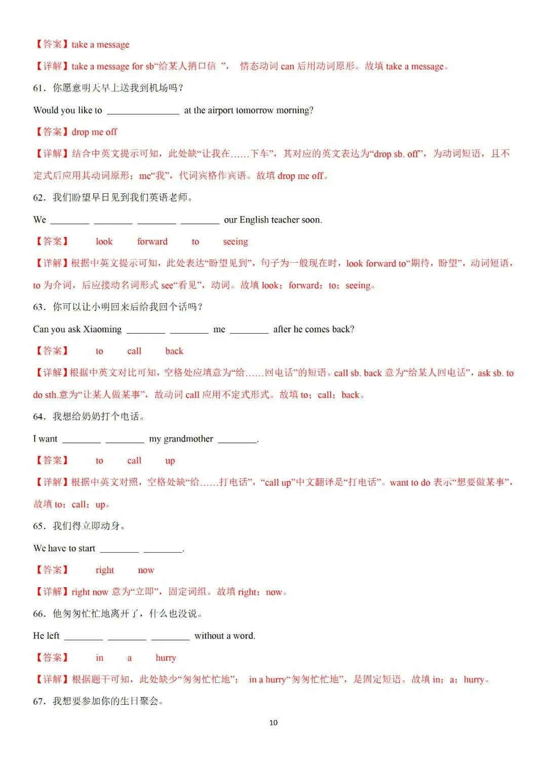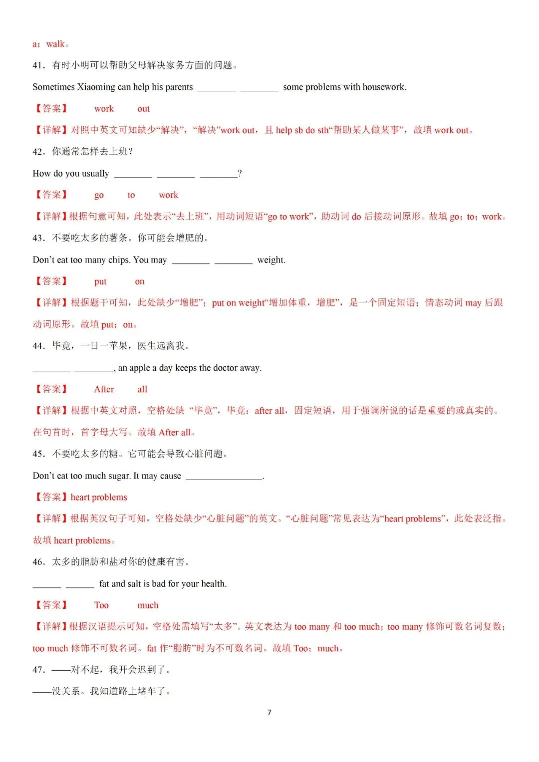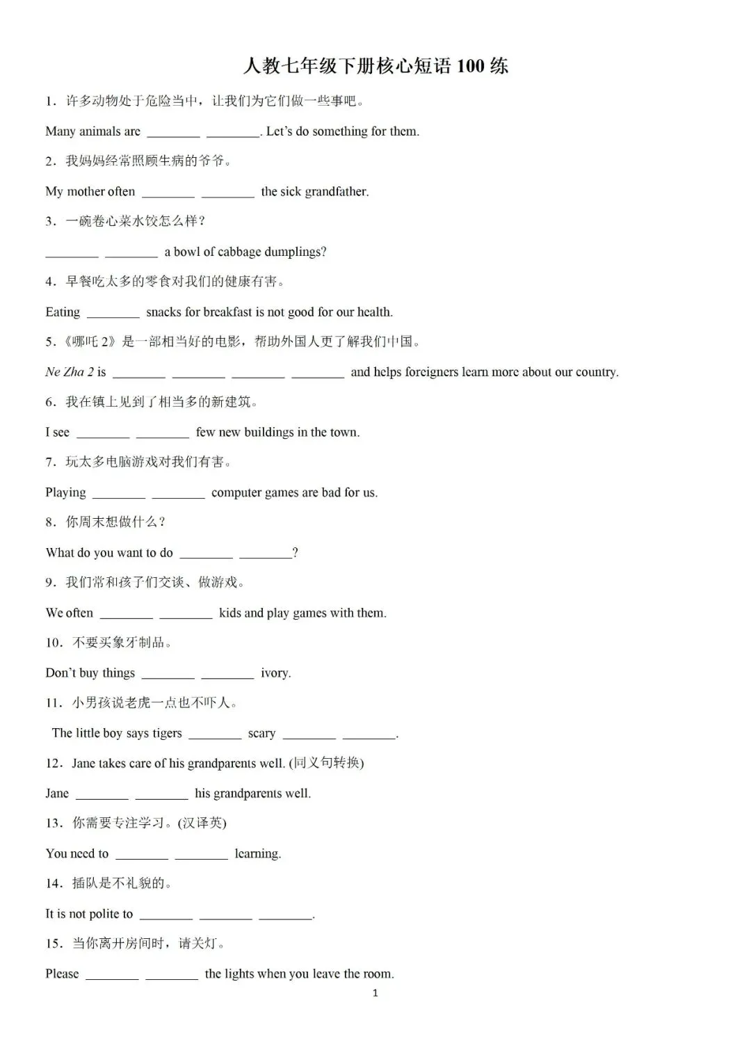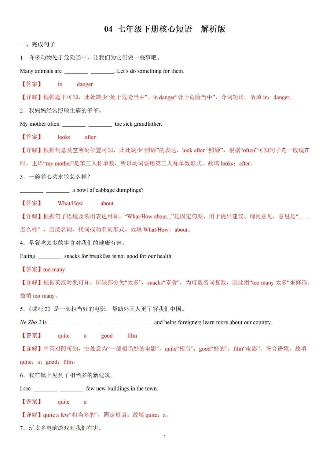 今天老师为大家整理好了:七年级下册英语核心短语复习解析版电子版可打印