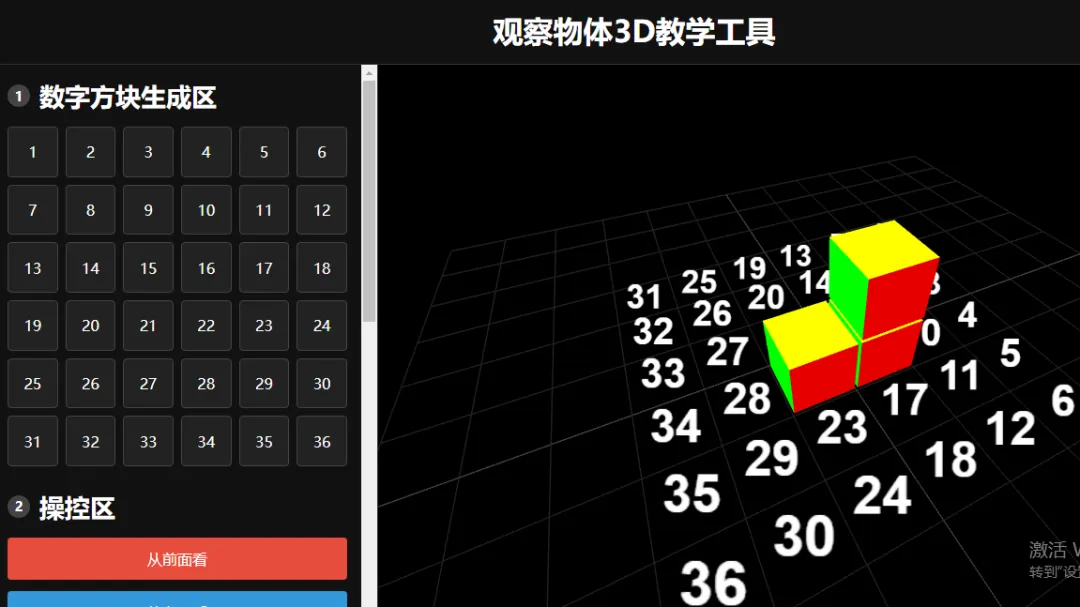 在小学中高年级数学“观察物体”单元教学中,学生需理解“从不同位置观察立体图形,看到的平面图形可能不同”的核心概念,但传统教学存在明显痛点:一是依赖静态教具(如正方体模型、图片),无法动态展示多角度视角切换,学生难以建立“立体图形→平面视图”的空间对应关系;二是抽象思维差异导致部分学生对“正面、左面、上面”等视角认知模糊,易混淆不同位置的视图特征;三是课堂互动形式单一,学生多被动接收知识,缺乏自主操作、验证观察结果的机会,难以深化空间想象力。