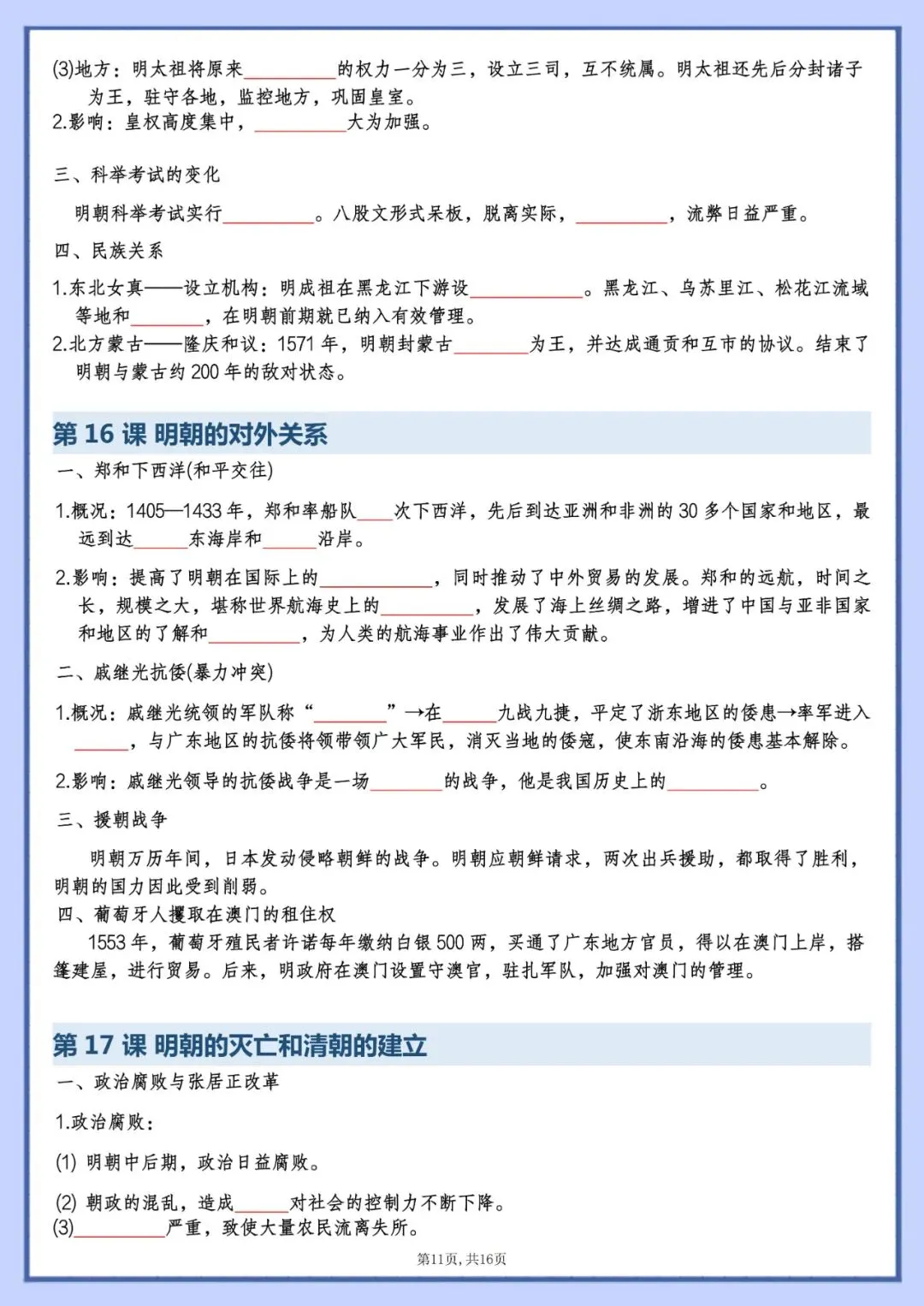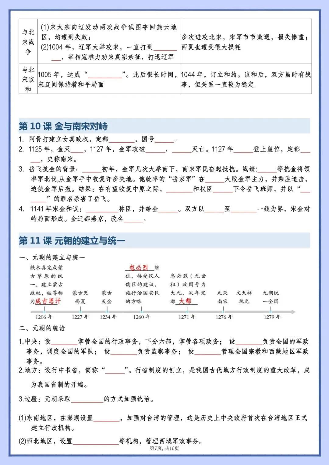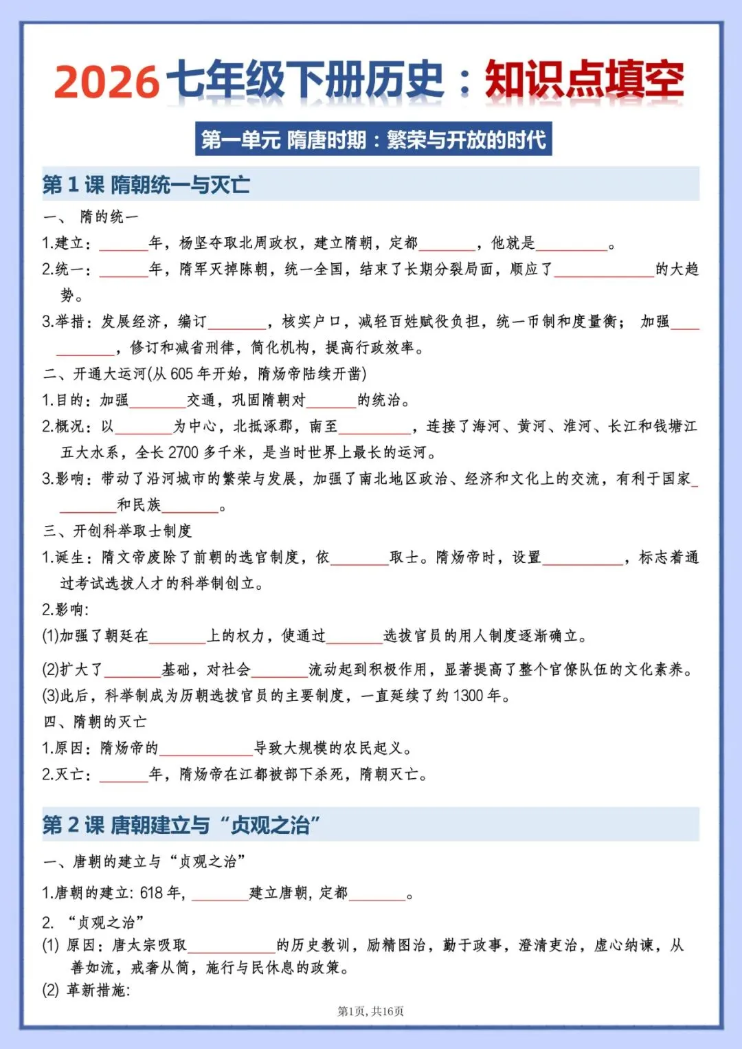 今天老师为大家整理好了:七年级下册历史知识点填空版电子版可打印