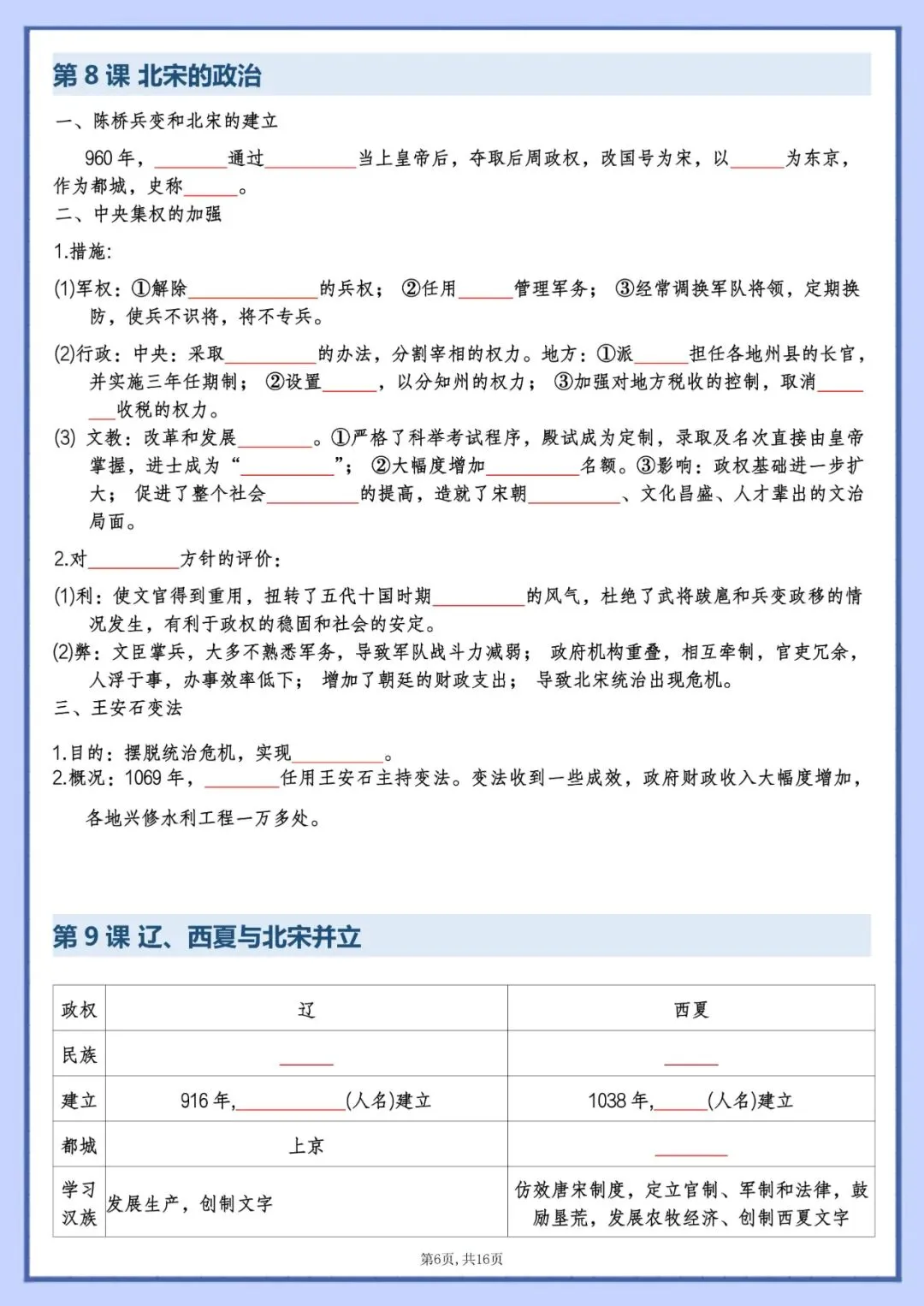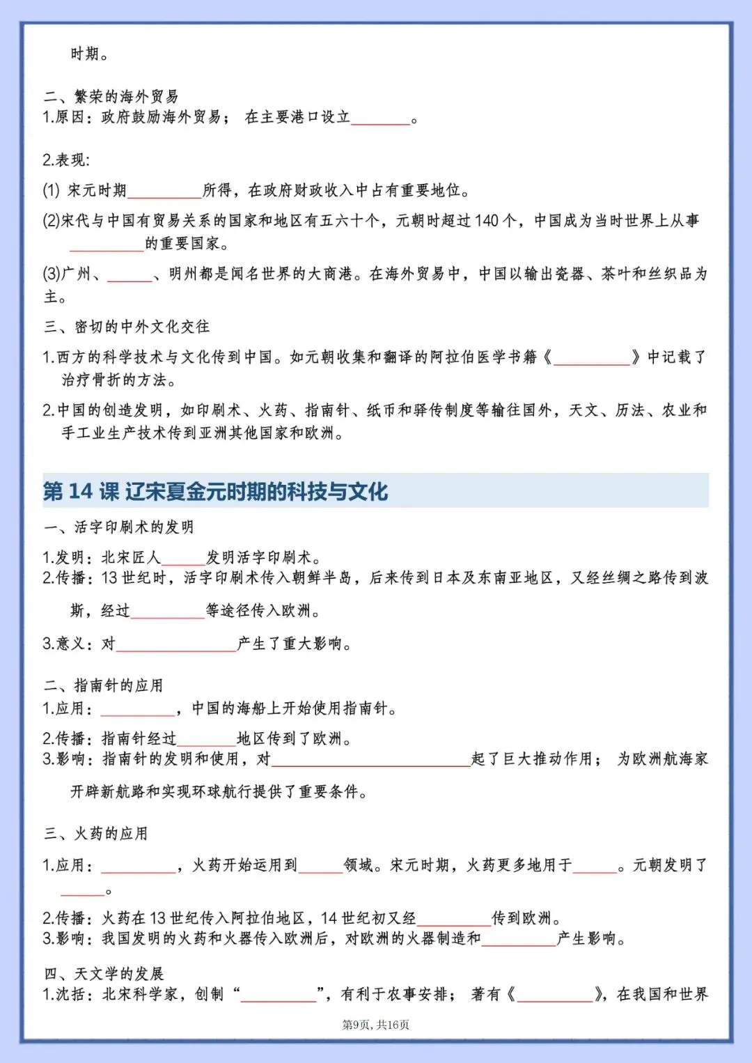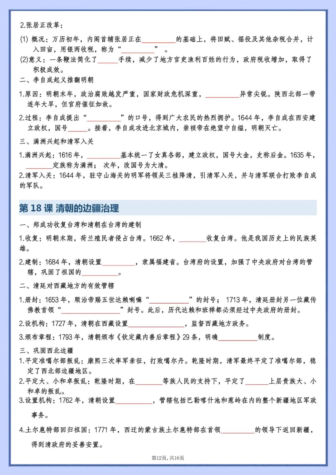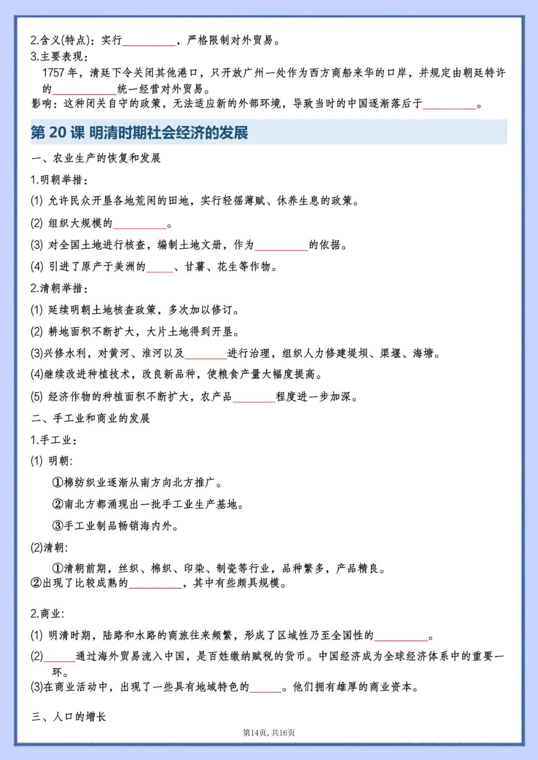 今天老师为大家整理好了:七年级下册历史知识点填空版电子版可打印