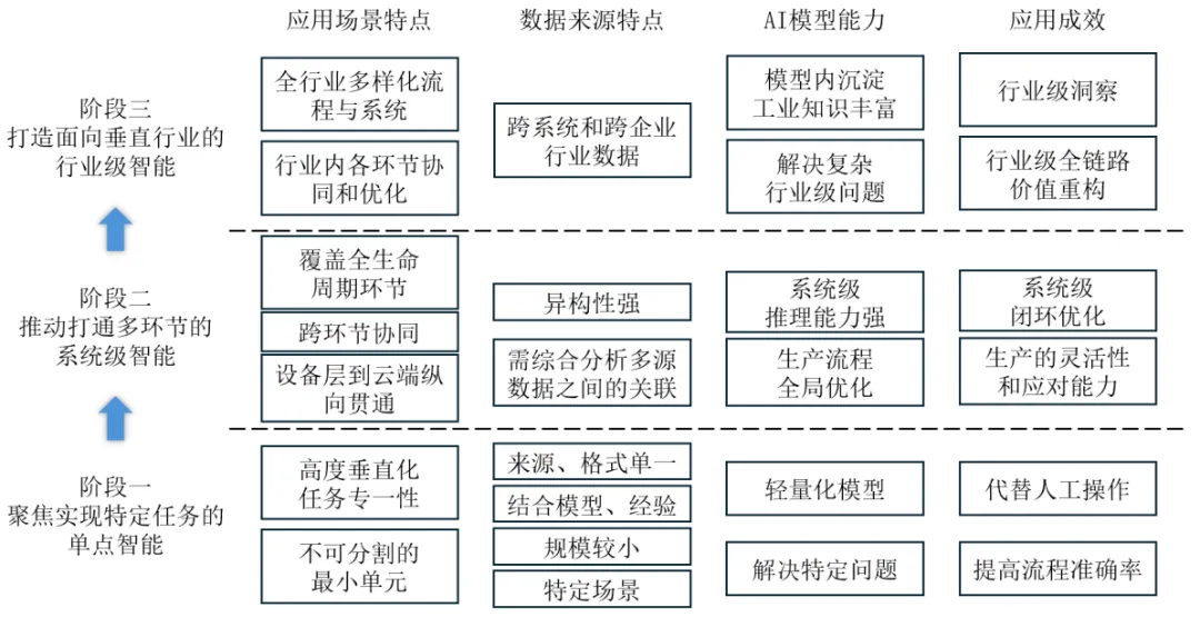 在该阶段,应用场景已实现行业垂直化,以工业软件为载体,将AI能力融合至行业核心流程,形成行业级场景下“监控、优化、控制”的闭环应用。此阶段的融合应用不仅依赖于行业级数据集成,还需充分考虑行业的复杂需求和企业的业务流程。