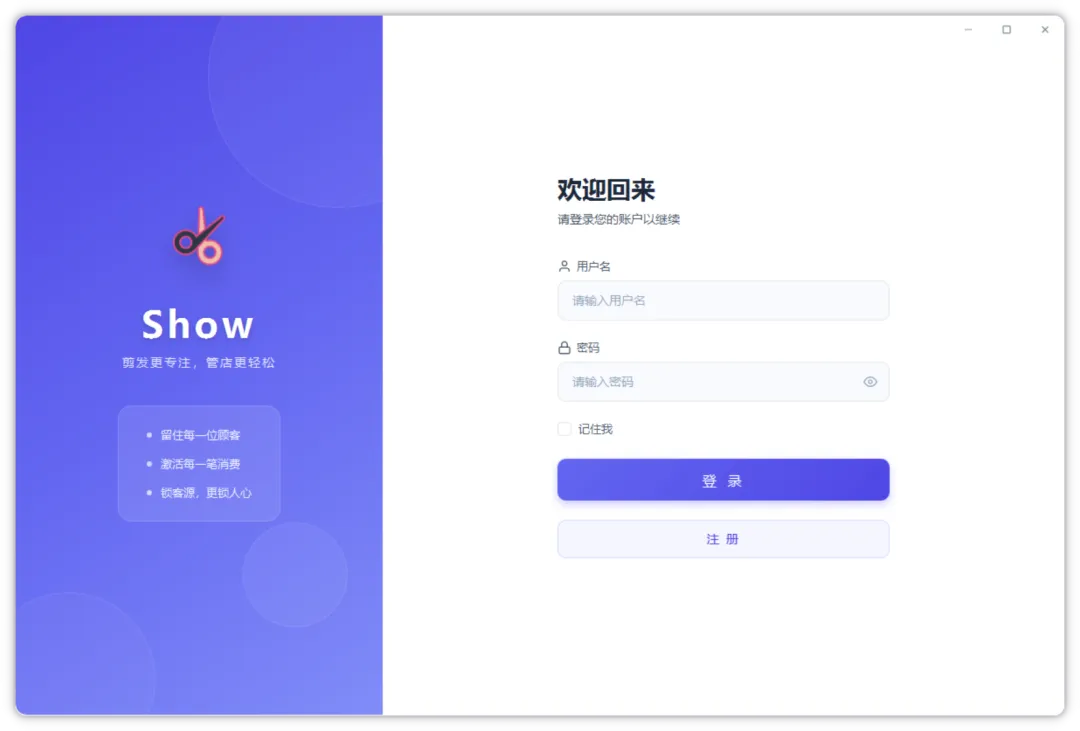 今天就给各位理发店老板们或者社区其他夫妻小店的小老板们分享一款完全免费的开源会员系统,Show – 理发店极简会员管理系统。目前只适用于Windows系统的电脑,安装之后注册一个账号就可以了。