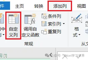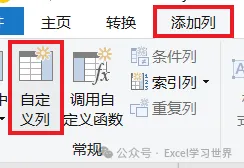 4. 选择菜单栏的“添加列”–>“自定义列”