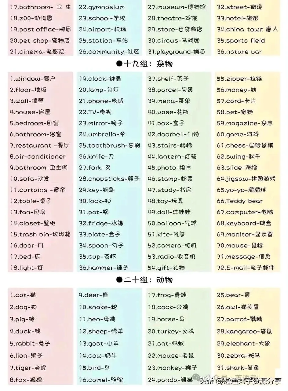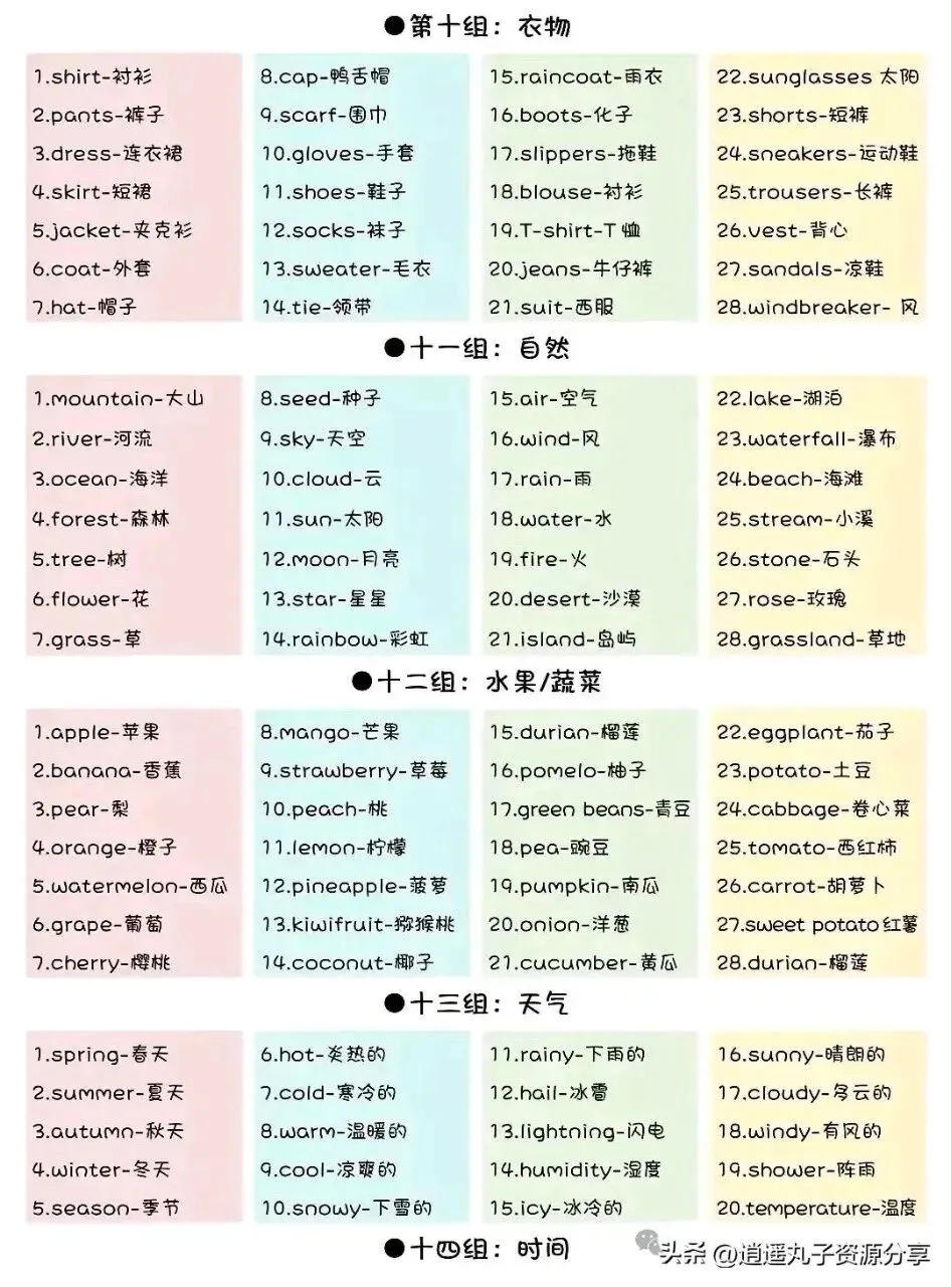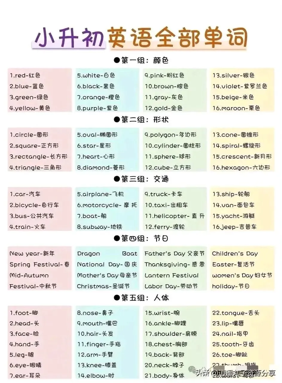 小升初英语单词分类汇总!可收藏打印