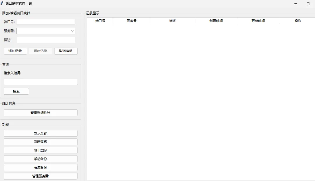 这款端口映射服务器可自定义服务器,服务器名称可修改,在下面管理服务器这边添加修改即可,也可以自由添加删除服务器名称。修改的时候下面端口会自动更新,支持添加、编辑、删除端口,强大的查询功能,支持端口号查询服务器。名称描述等关键词查询有关的统计信息以表格形式展现,支持所有端口映射数据导出为CSV文件数据可作为本地数据库永久保存。