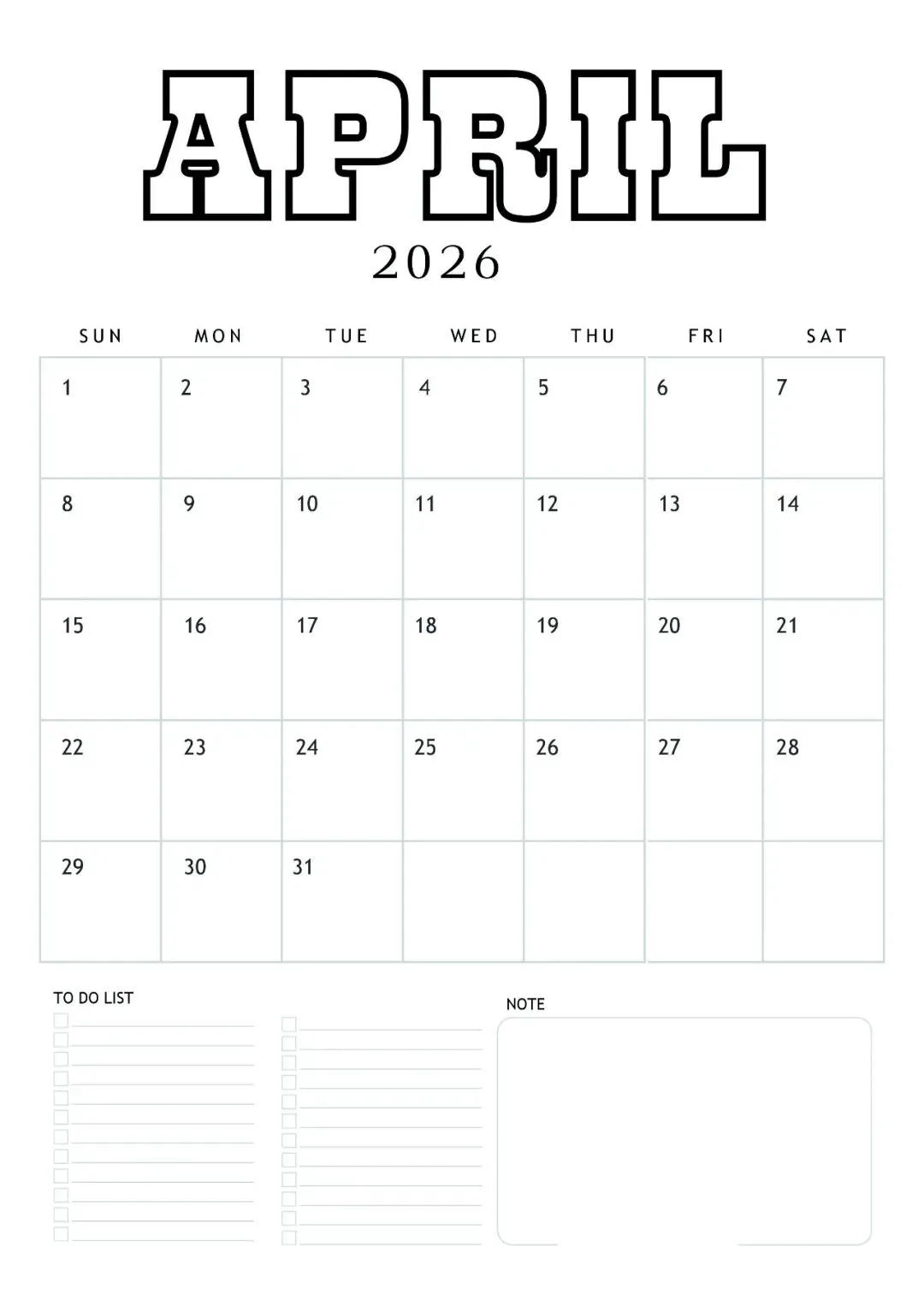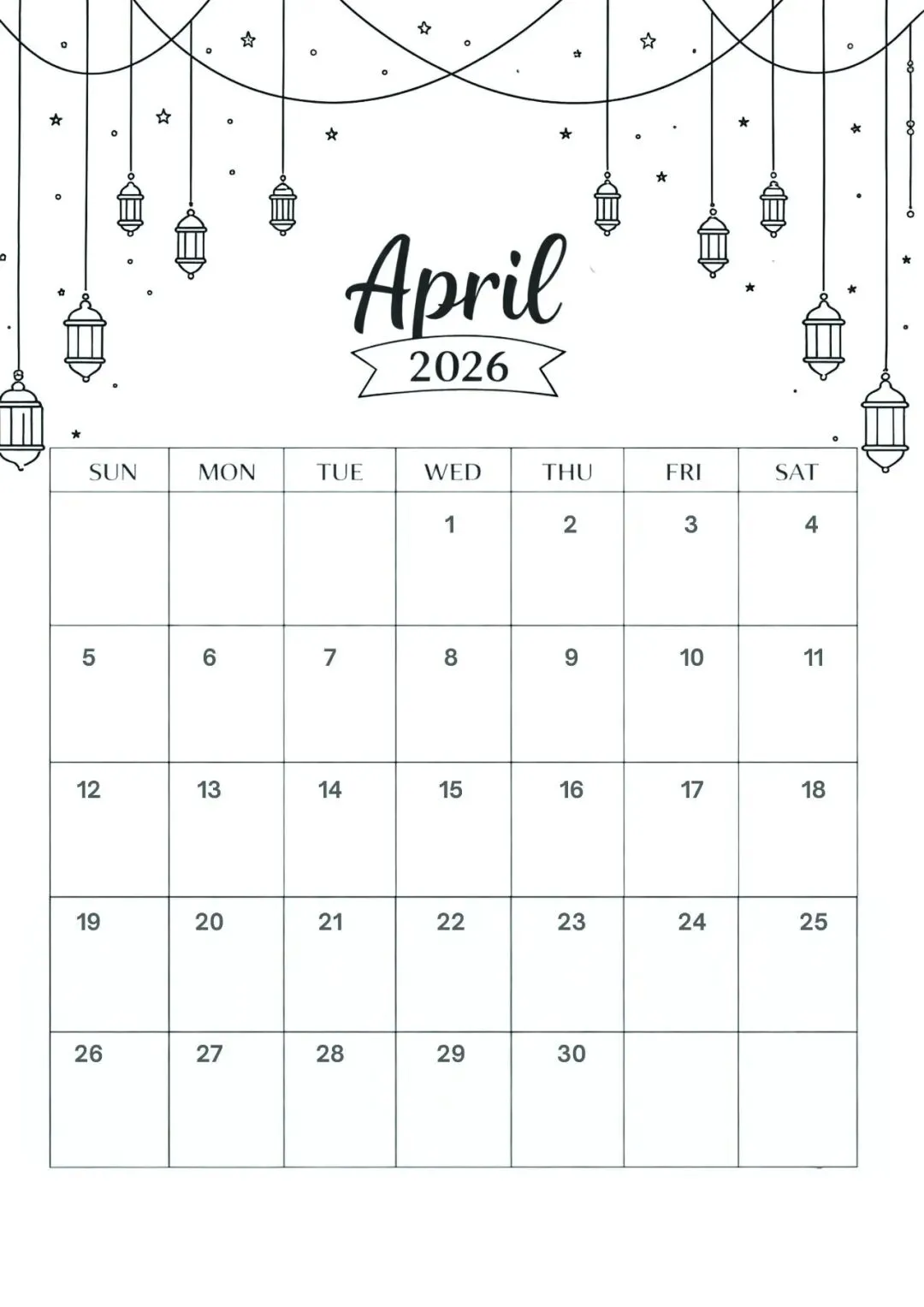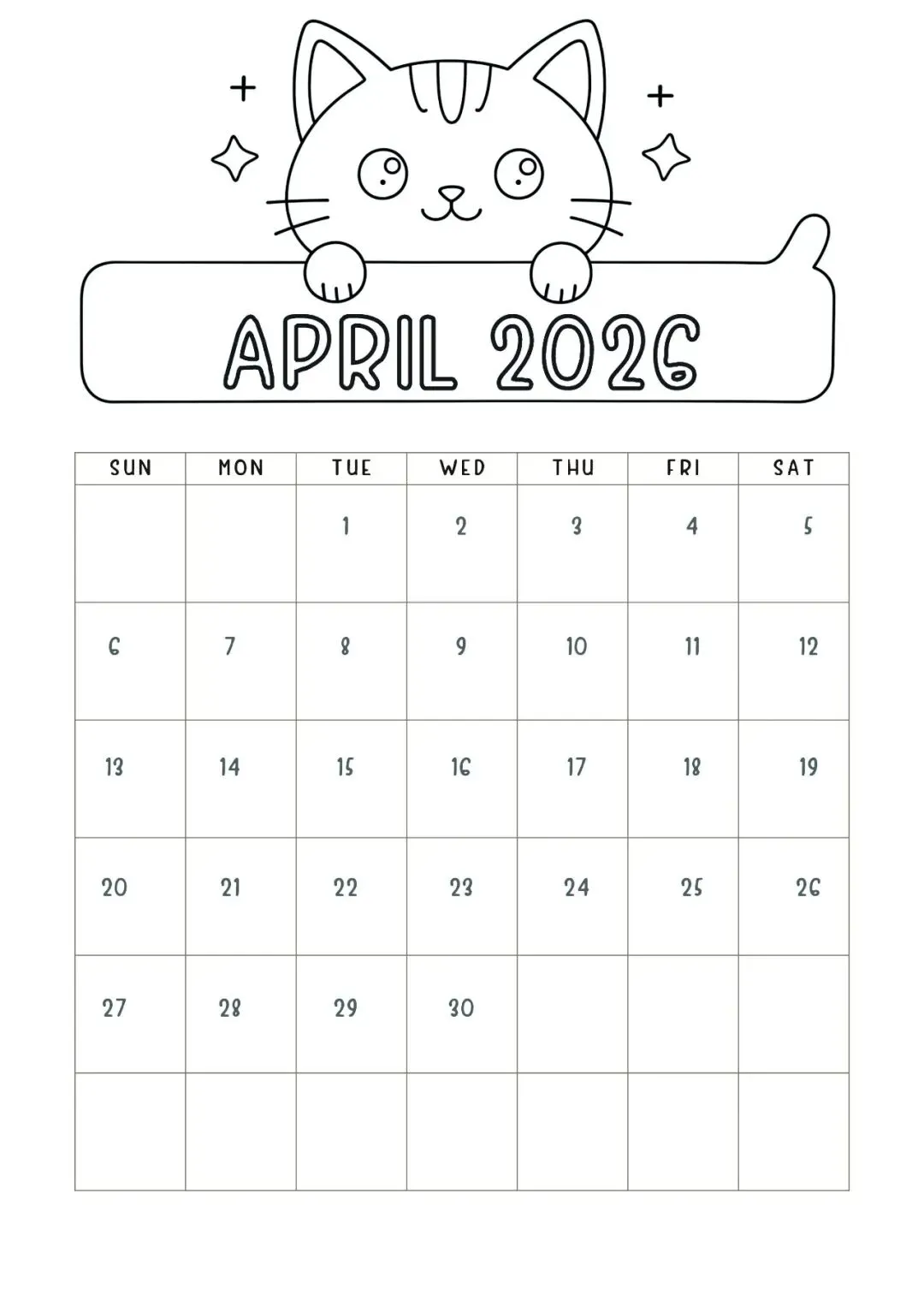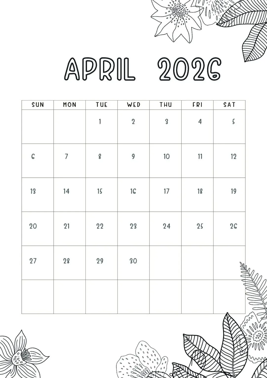 4月日历手绘模板,可打印涂色!