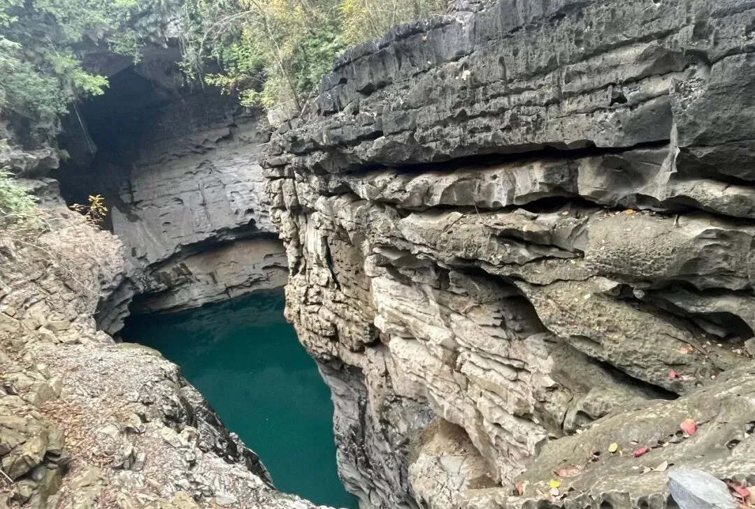 九顿天窗,被誉为「地球之眼」,水下溶洞纵横,暗河涌动,枯水期更显深邃与神秘。阳光穿透水面,折射出层层蓝绿渐变,站在岸边,仿佛能听见地心的呼吸。Jiutun Skylight, known as the “Eye of the Earth”,boasts intricate underwater caves and flowing underground rivers.The dry season deepens its mystery and serenity.Sunlight filters through the water, creating layers of blue-green gradients.Standing by the shore, you can almost hear the breath of the earth.✨ ────────────────✨