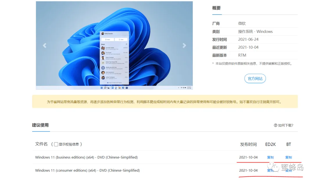 2.1 登录网站后我们将能看到里面有好多所需要下载的系统,这里就根据自己所需进行下载