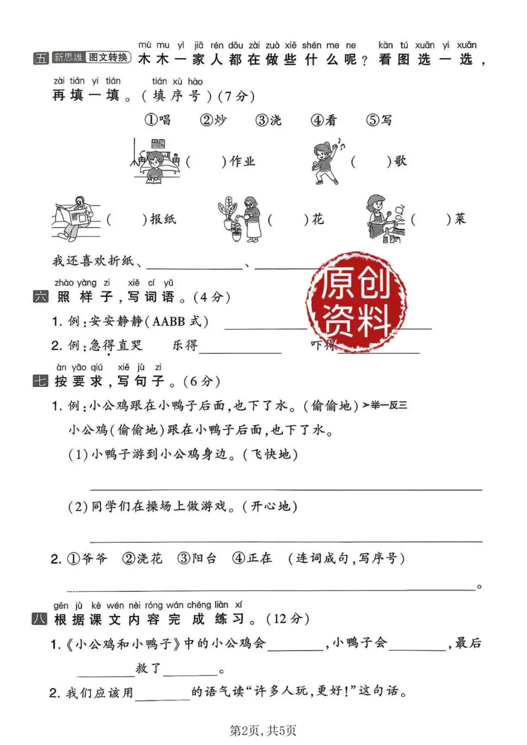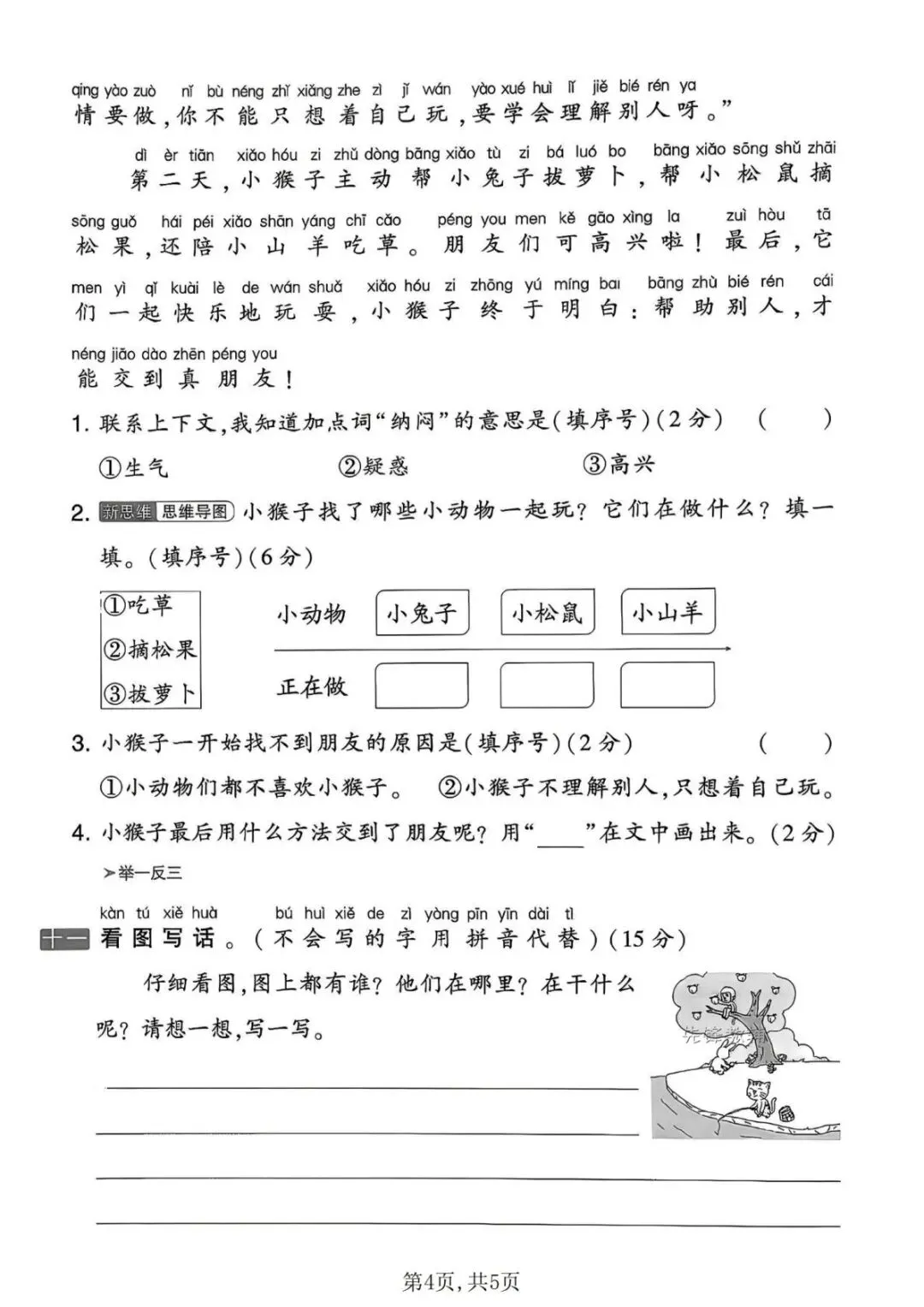 一年级下册语文第三单元测试卷!电子版可打印