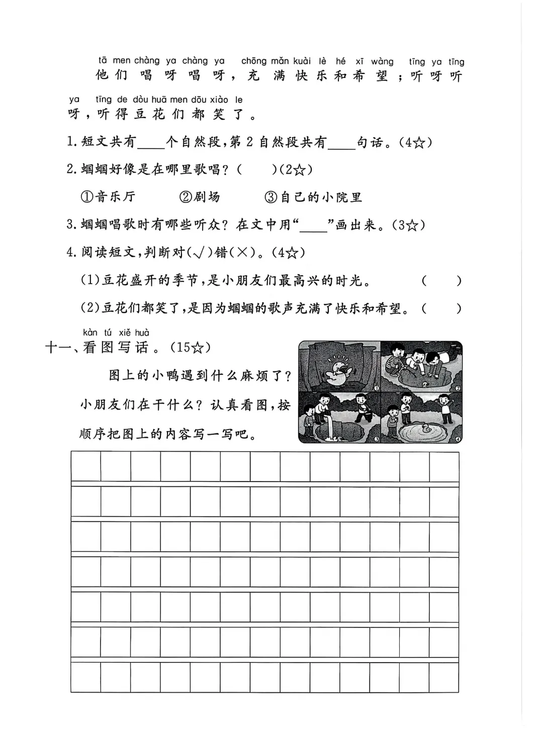26春人教部编版一年级下册语文《第三单元拔尖测试卷》共5套含答案,可打印