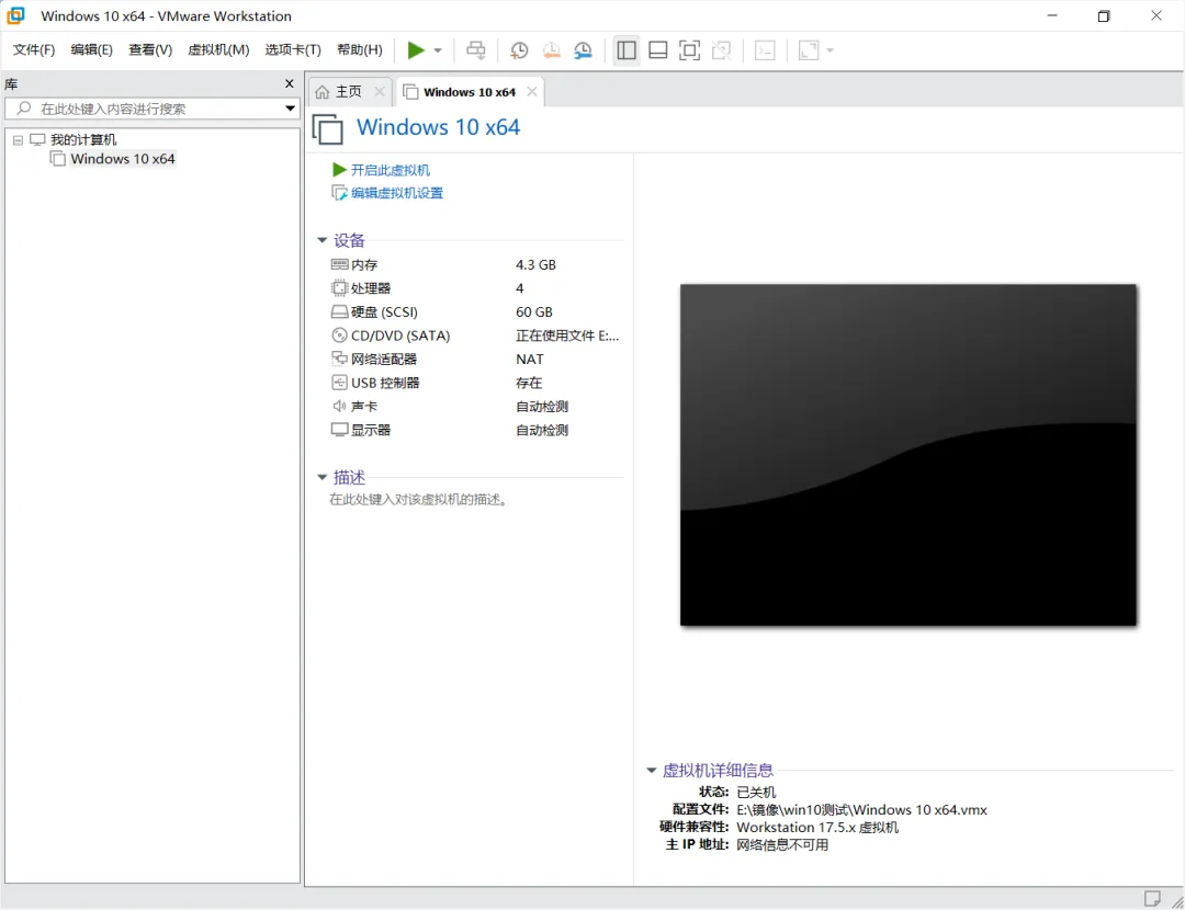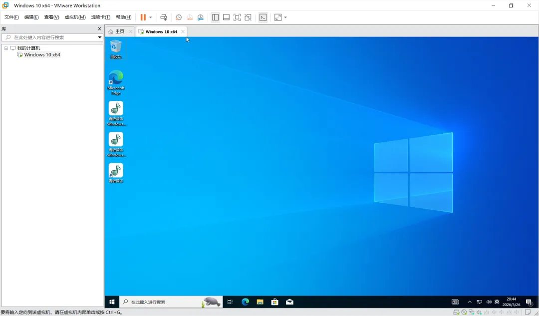 长青这里创建的一个win10系统的虚拟机,因为平时要测试各种软件。