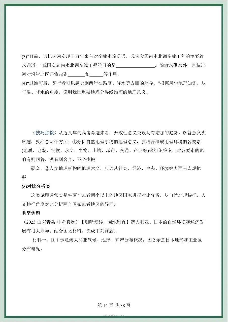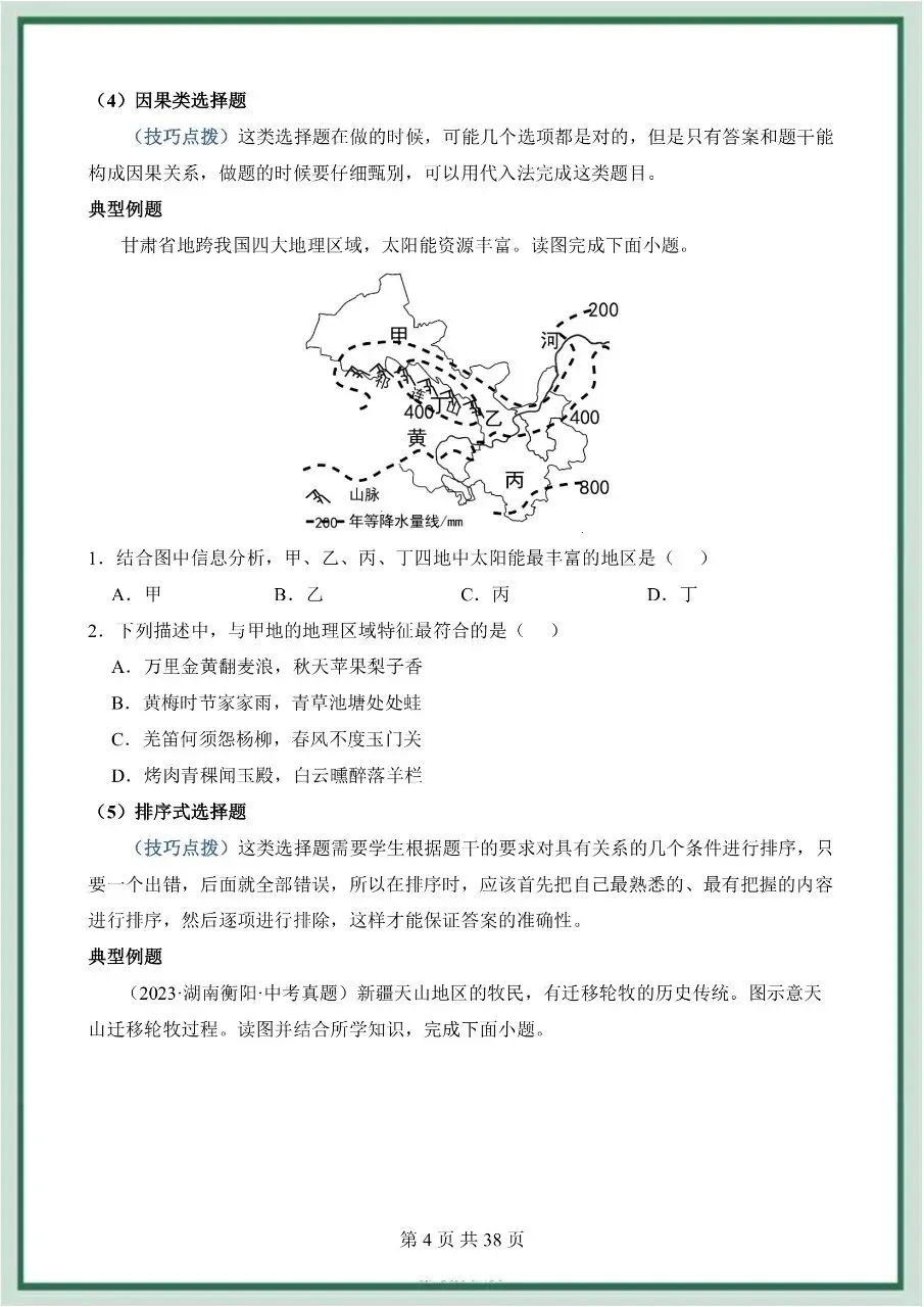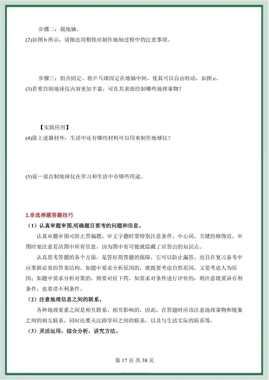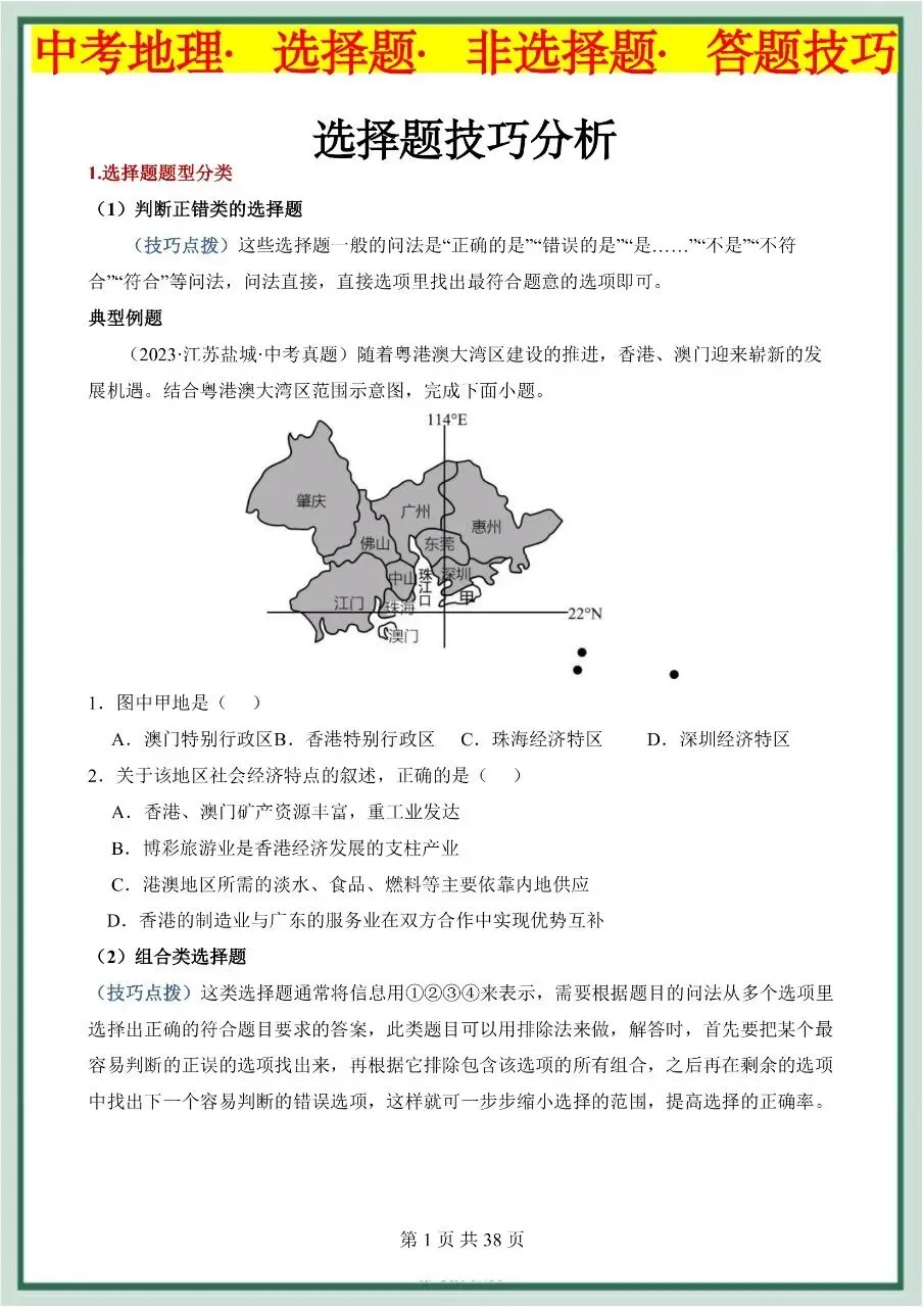 2026年最新版地理会考非选择题+选择题答题技巧分析 有完整电子版可打印,学霸学习好帮手,建议家长打印,学霸人手一份!