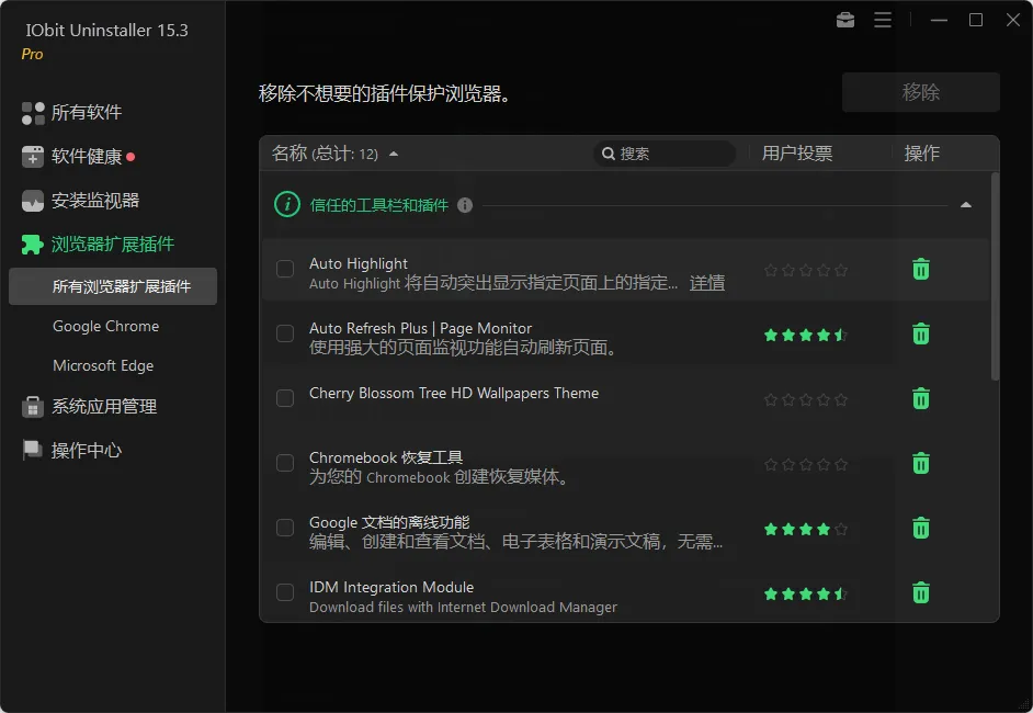 还可以管理浏览器插件